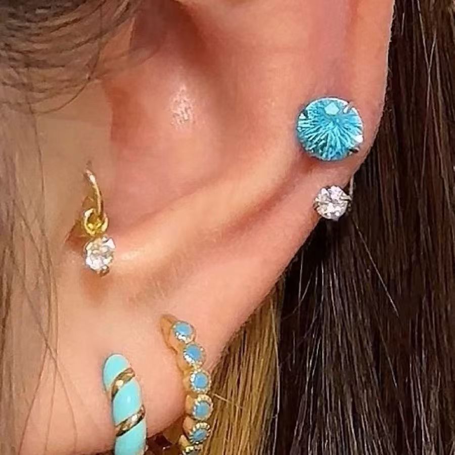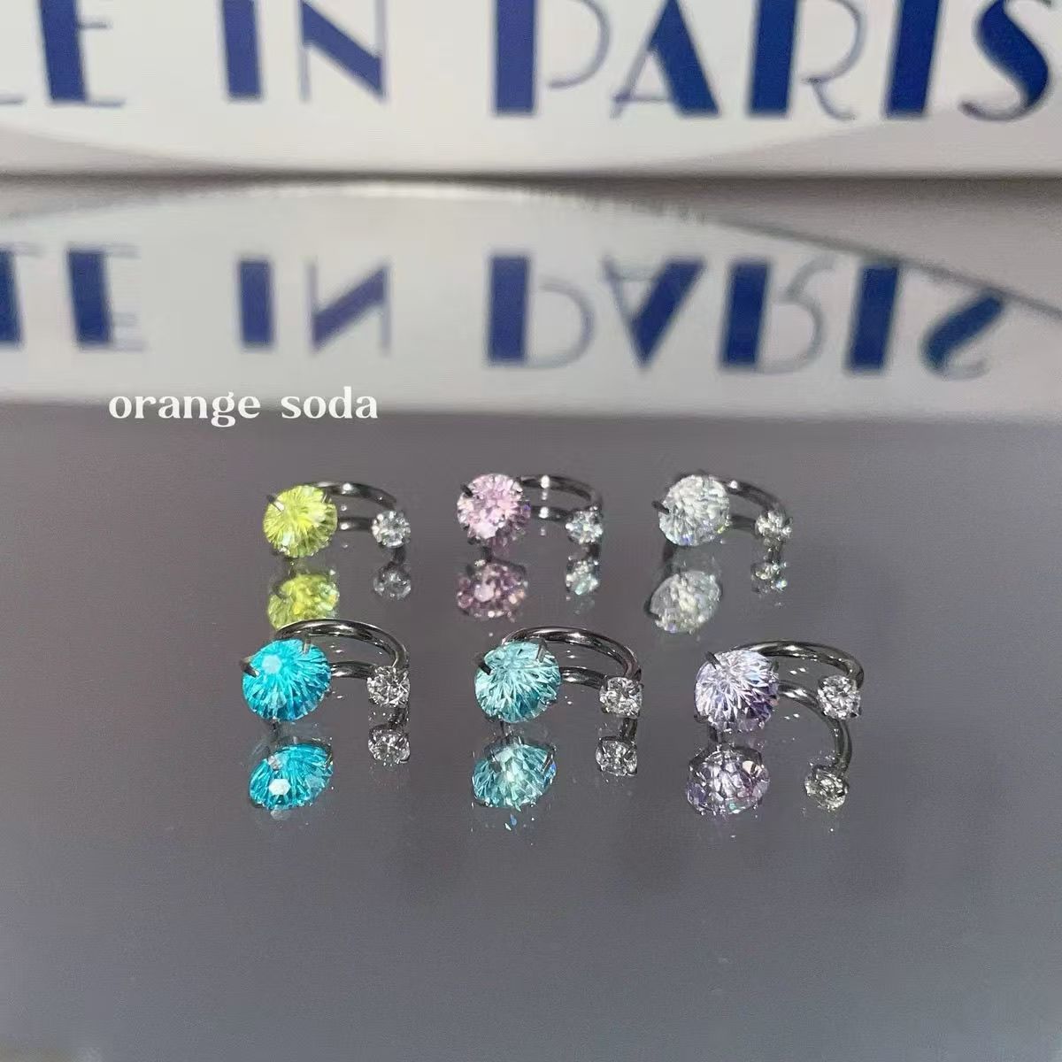 Super flash firework cut zircon horse hoof ring titanium steel ear bone stud color 1.2 thick U-shaped earrings for women's new style