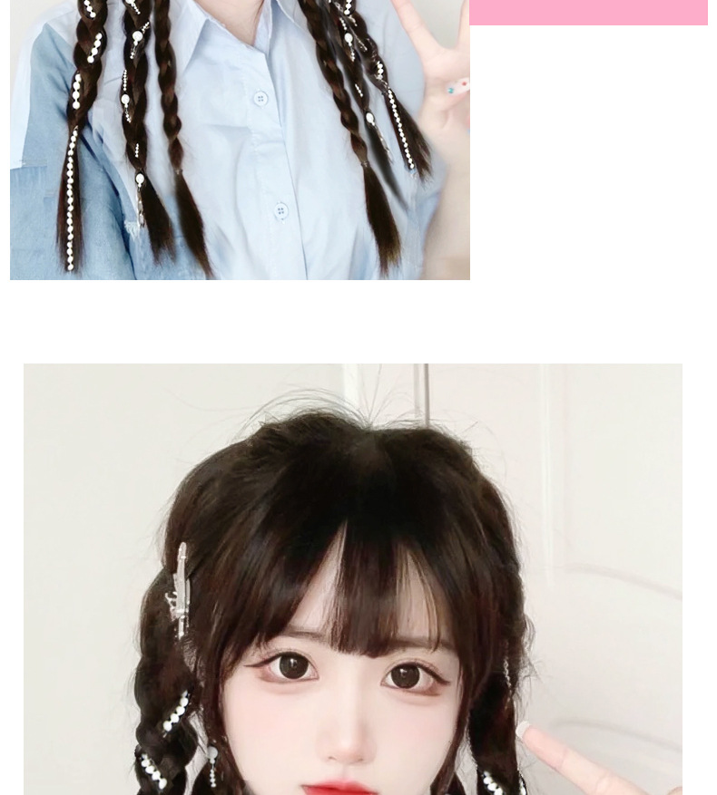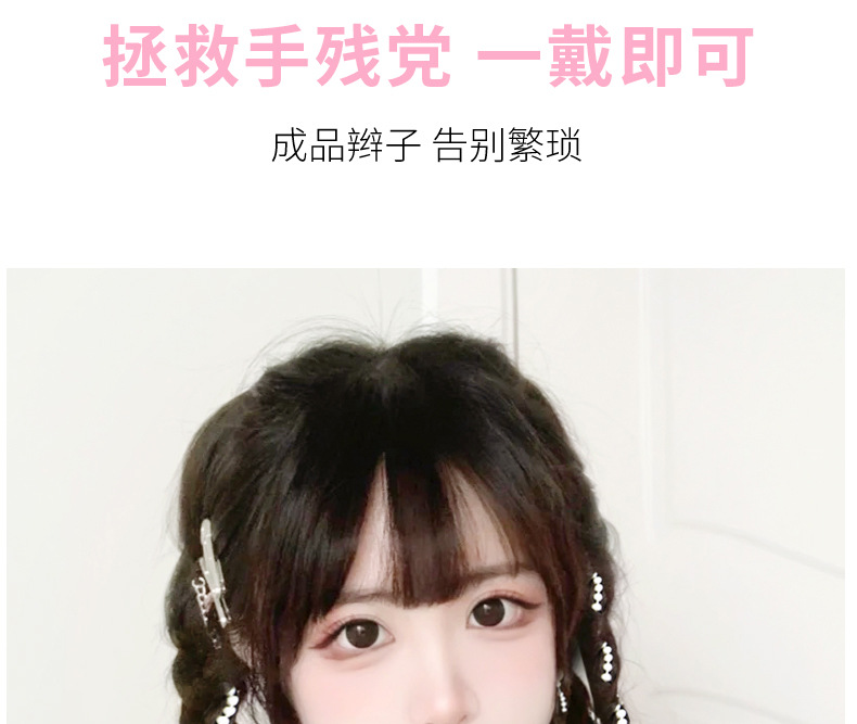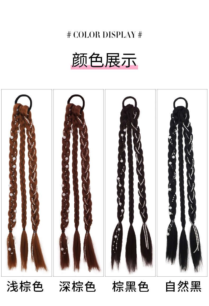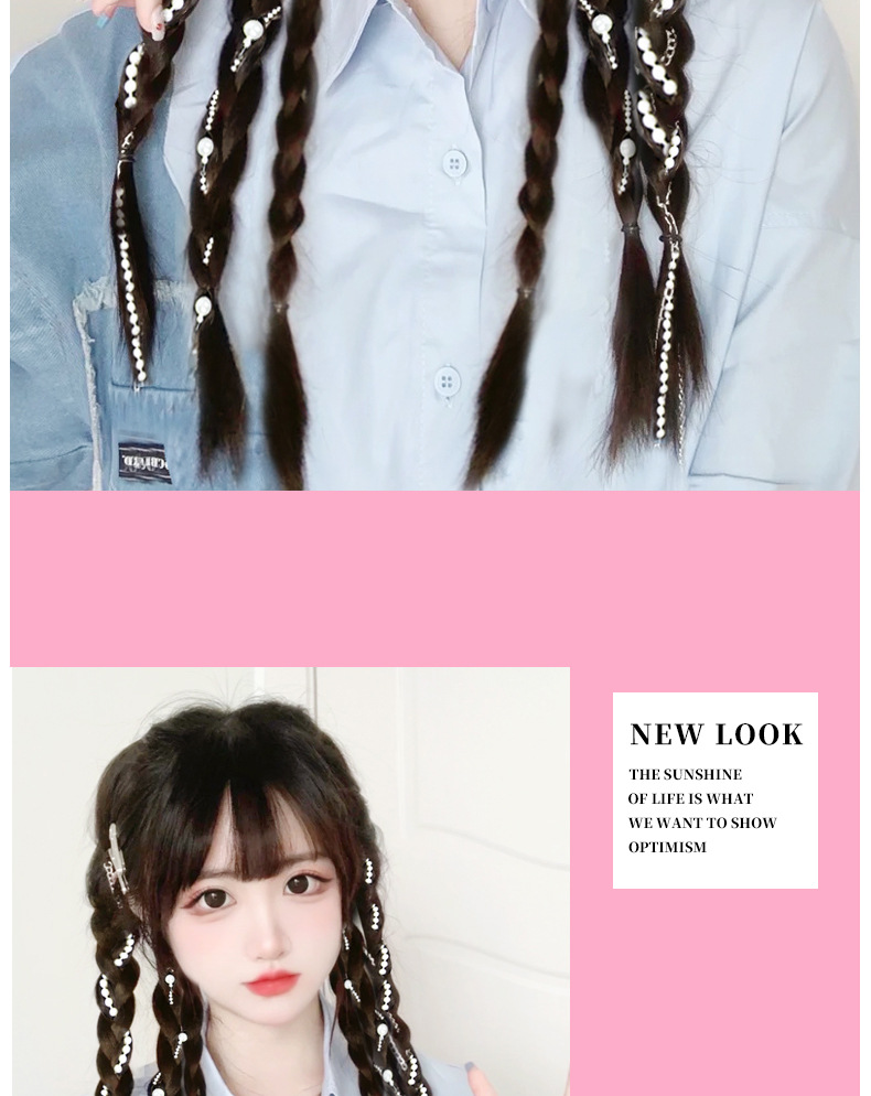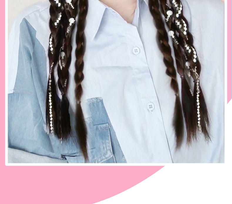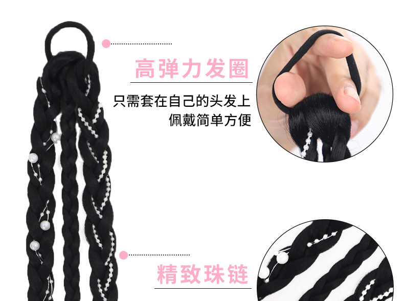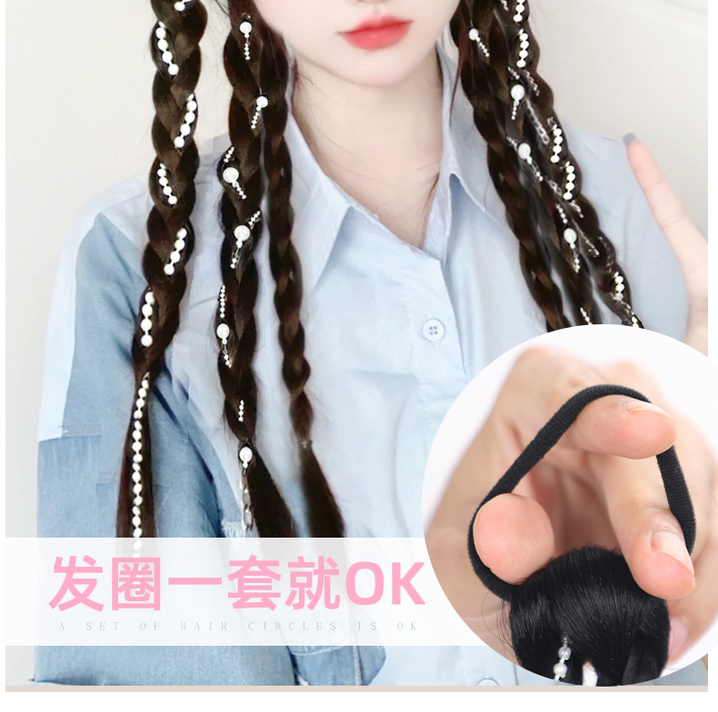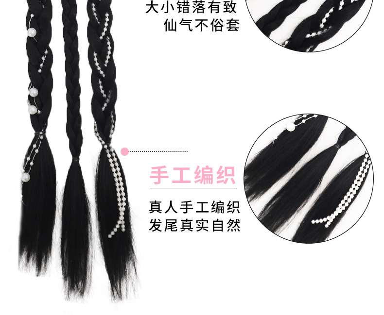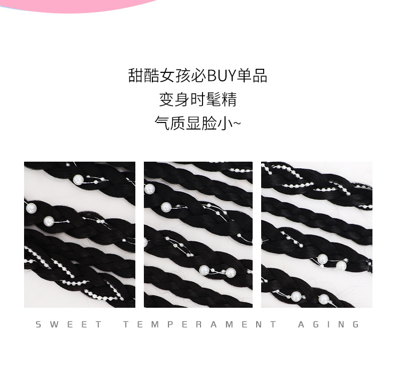 Sweet and cool boxing braids, double pearl braids, wigs, girls' high school ponytails, pure hand-woven, internet-famous moon-shaped pearl braids, ponytails
