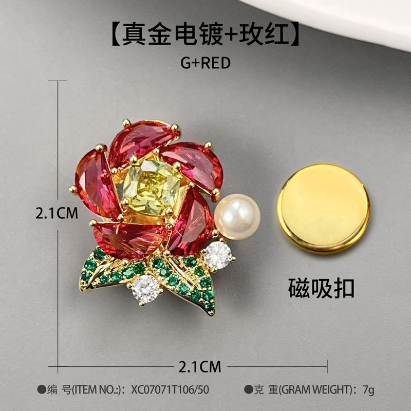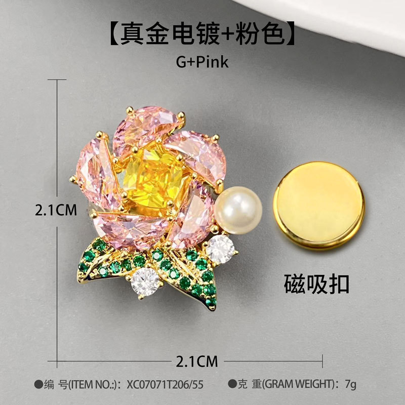 Sweet and cute crystal flower brooch, light luxury and high-end feel, camellia magnetic clasp suit jacket accessory, corsage for women