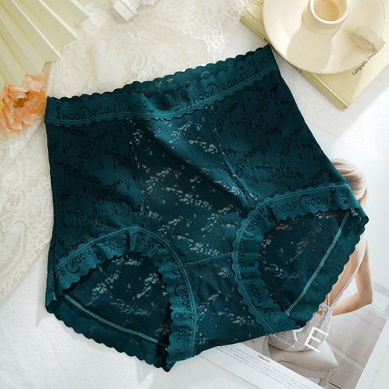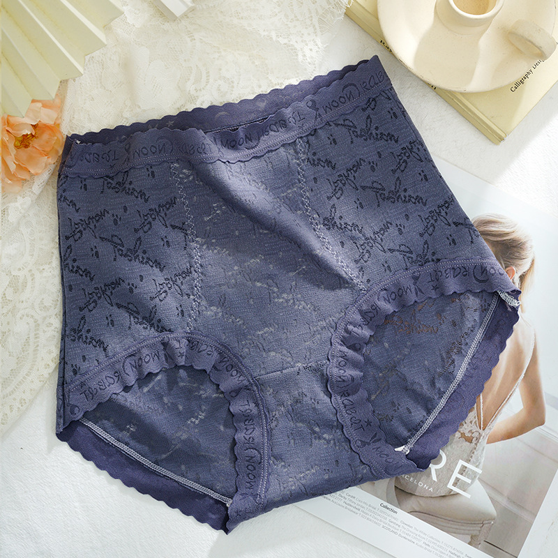 Sweet French lace jacquard elegant women's underwear, high-waisted, belt-cinching, hip-hugging, large-sized antibacterial crotch briefs in stock