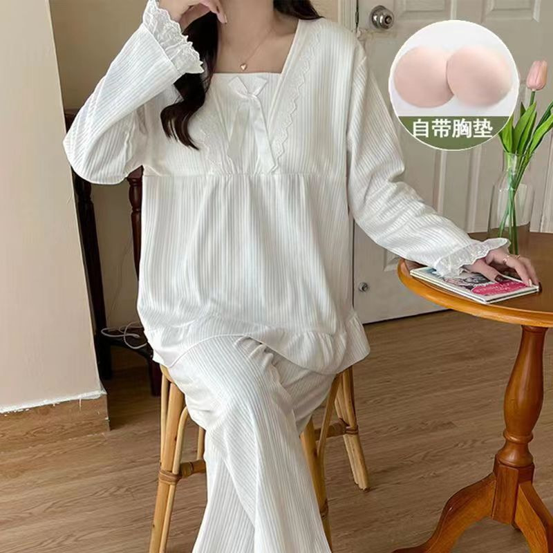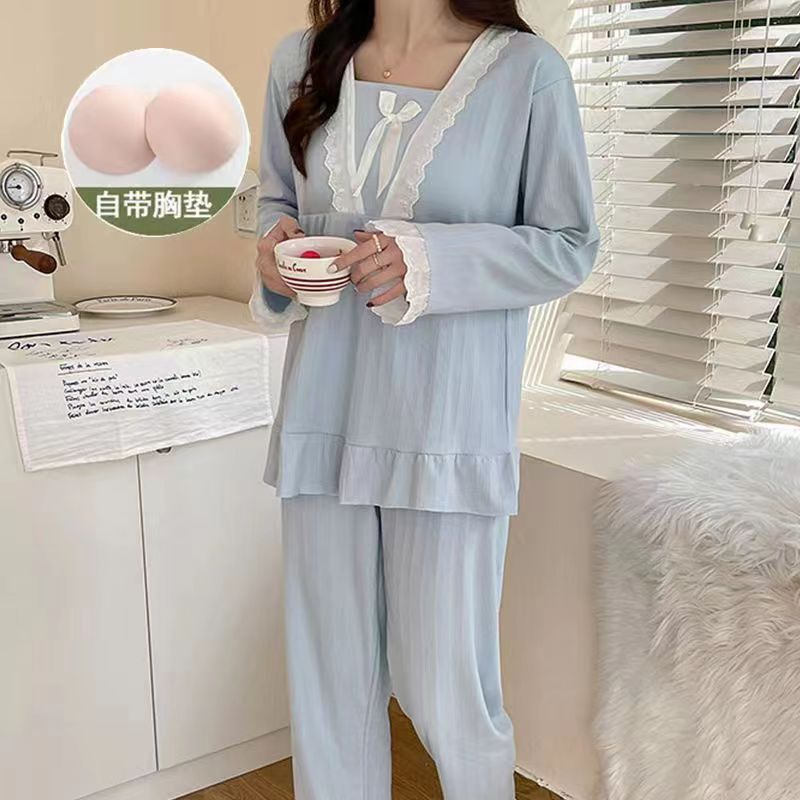 Sweet Korean cross-border princess-style long-sleeved pajamas, women's bow, sweet wechat business influencer live-streaming, and trendy home wear
