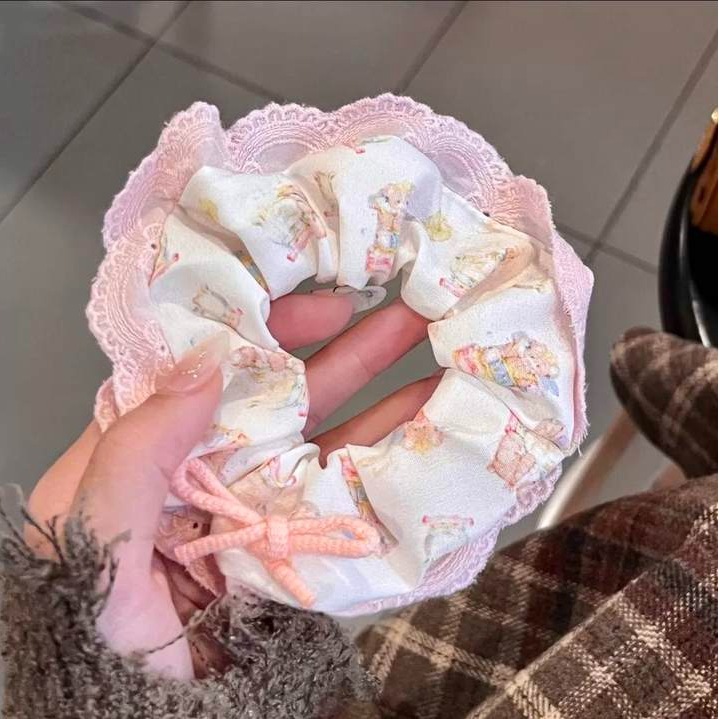 37# cream-colored cream puff large intestine hair band, about 10cm