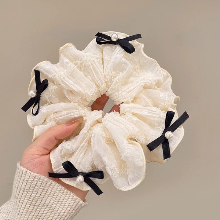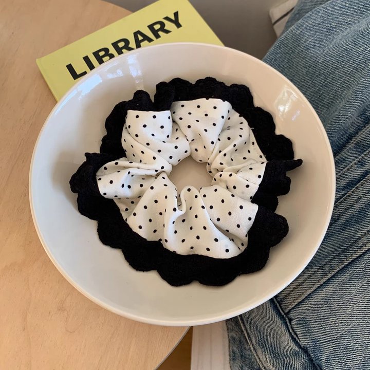 21# cream-white polka dot large intestine hair ring, about 10cm