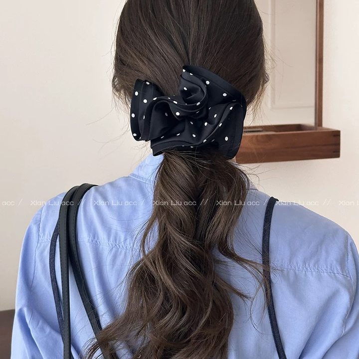 17# Dark blue polka dot large intestine hair ring, about 11cm