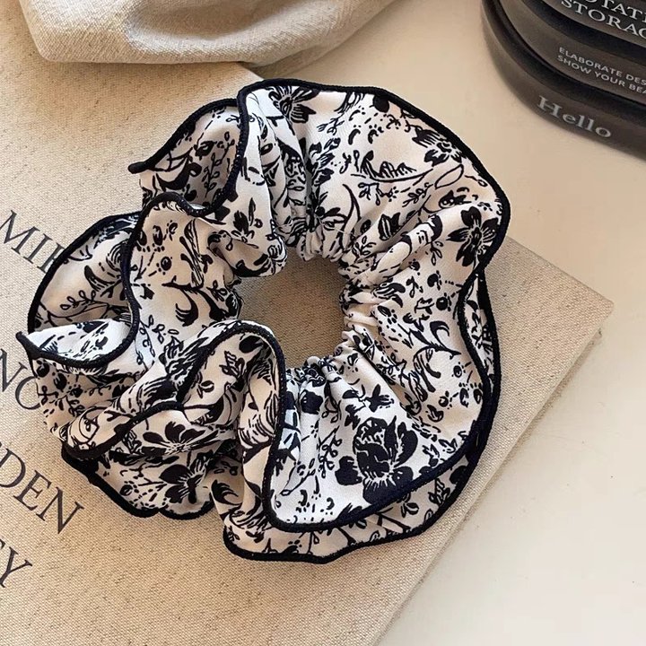 66# Oil Painting style floral print hair tie about 22cm square scarf