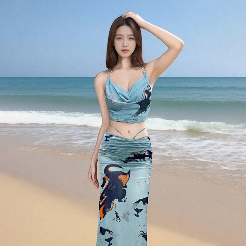 Swimwear Women 2025 New butterfly Print bikini Sexy Long dress with steel supports gathering seaside vacation swimwear -125141