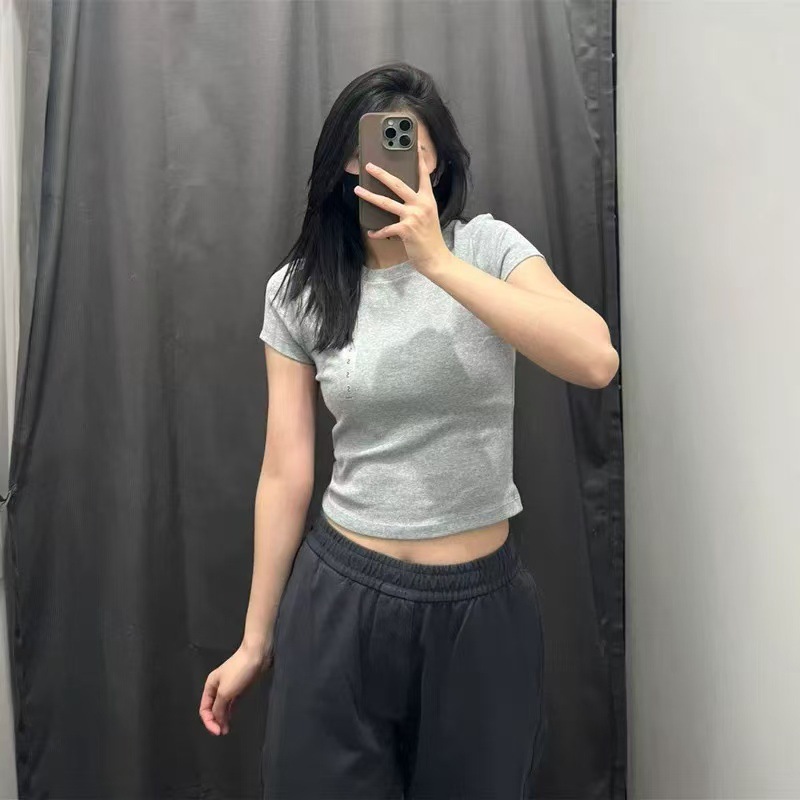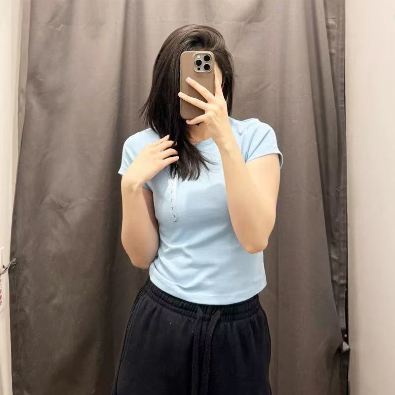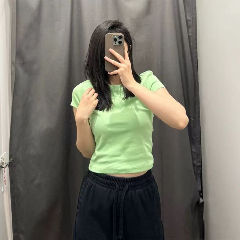 女休闲风圆领短款T恤短袖辣妹高腰修身显瘦打底纯色465760/474410