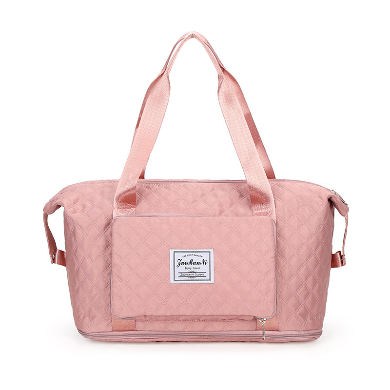 T foldable travel bag, Korean embroidered thread diamond-shaped fitness bag, single-shoulder handbag, large-capacity foldable luggage bag