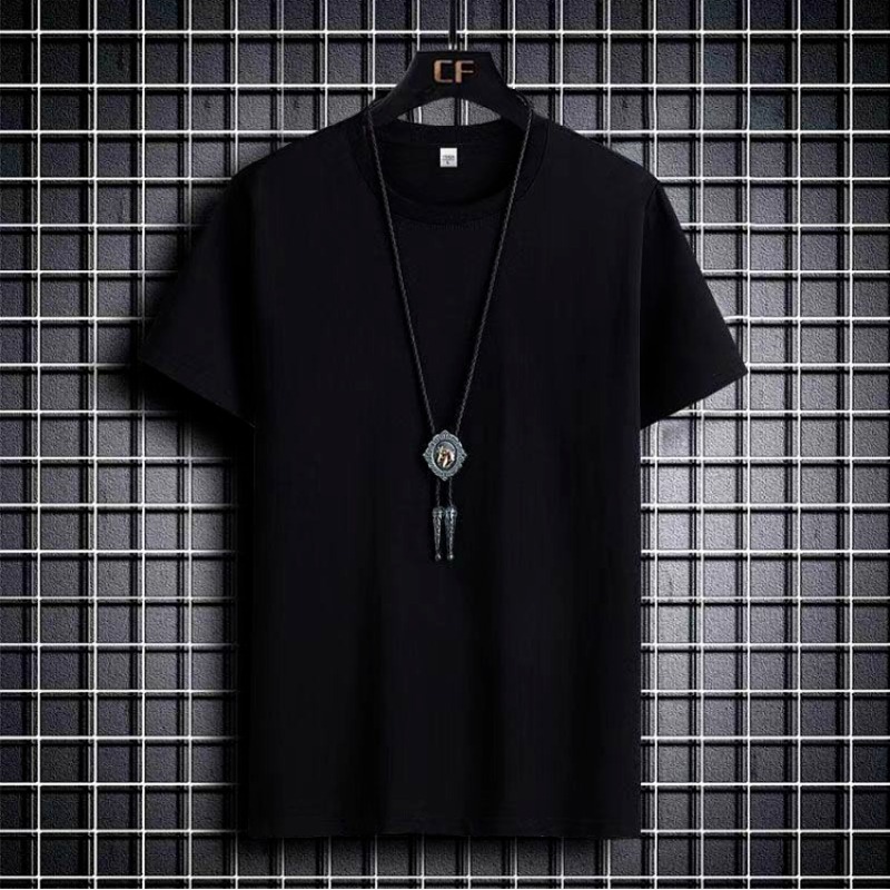 T-shirt half-sleeved solid color Harajuku casual style for men, summer cotton trendy loose, sweat-absorbing and breathable five-inch short-sleeved for men and women