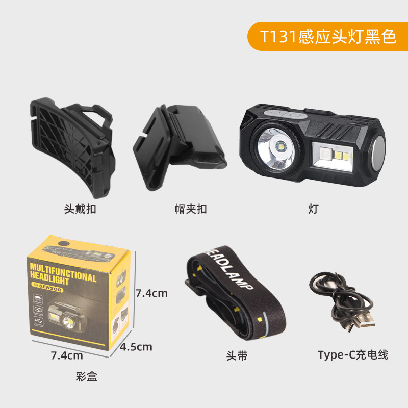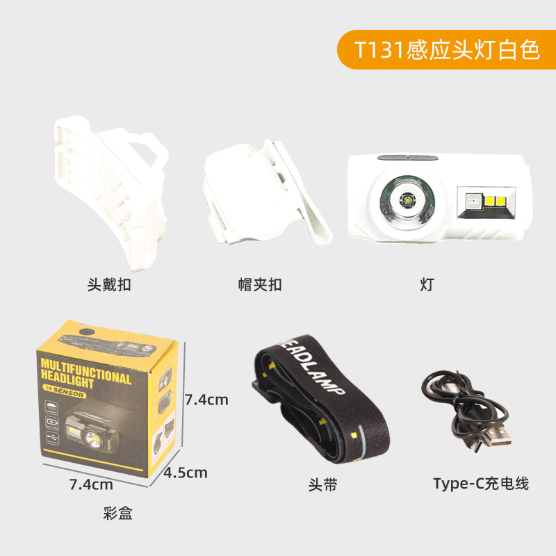 T131 Light sensor headlamp USB charging night fishing lamp Running cap clipper headlamp Wearing dual-purpose four-source LED headlamp