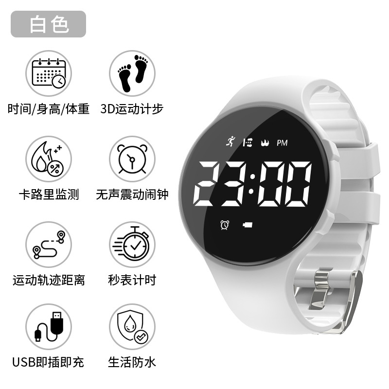 T6A sports pedometer Girls' Korean version simple and trendy middle school watch Boys' Children's waterproof electronic watch