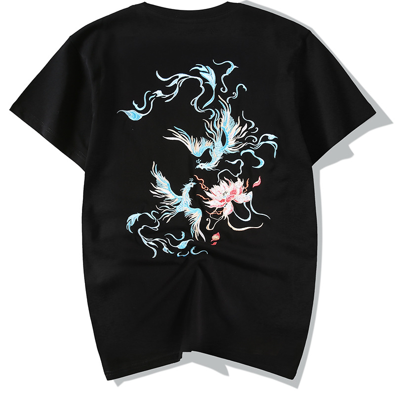 国潮中国风短袖t恤男 夏季宽松大码青年凤凰图案刺绣潮牌纯棉半袖