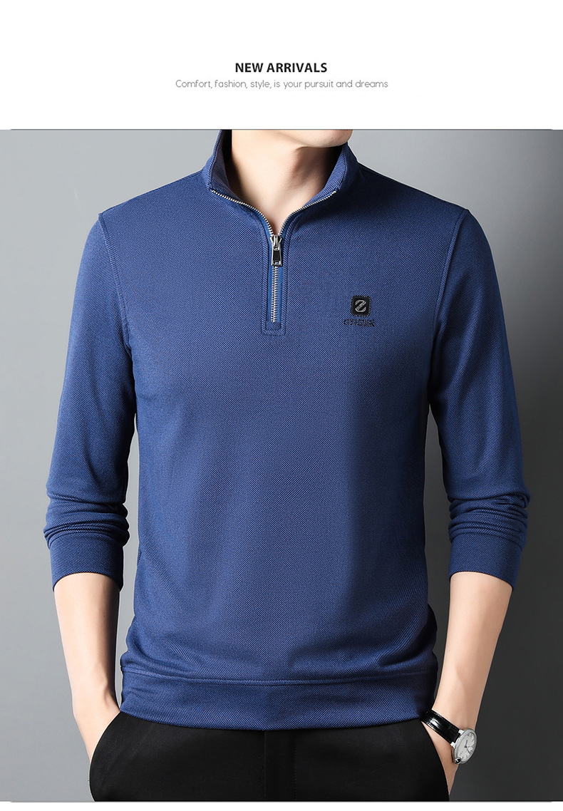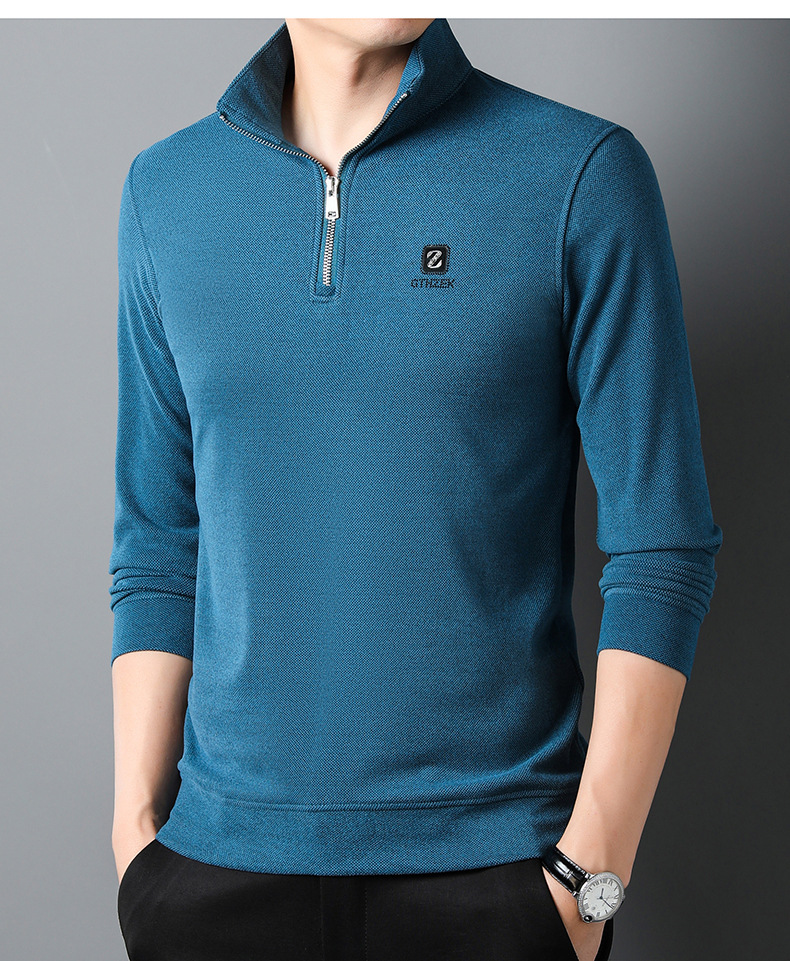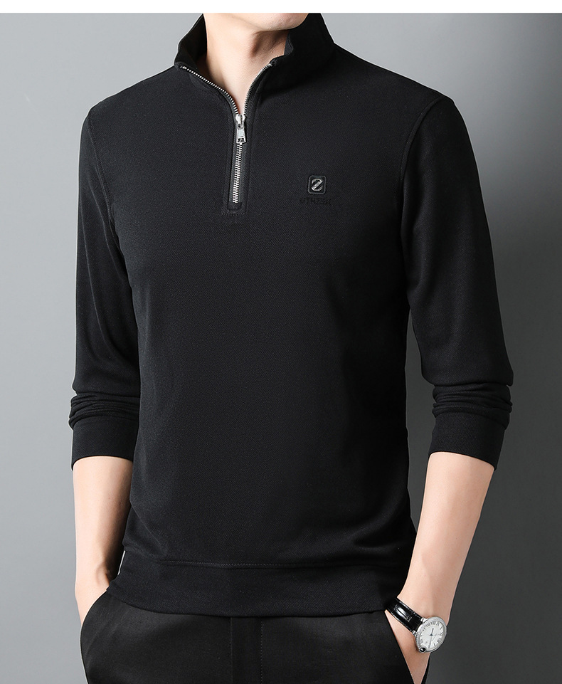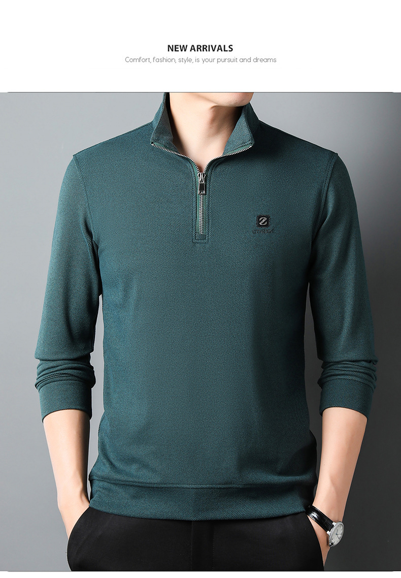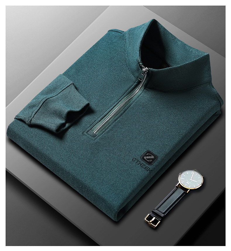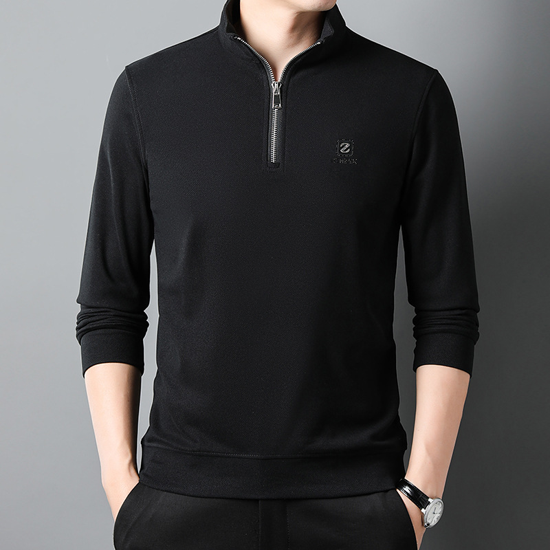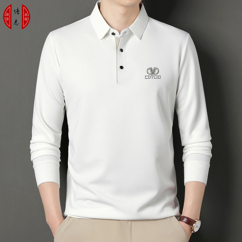 Long-sleeved Polo shirt for men 2023 autumn new style, business rhinestone straight-neck lapel base shirt for men, long-sleeved T-shirt for men
