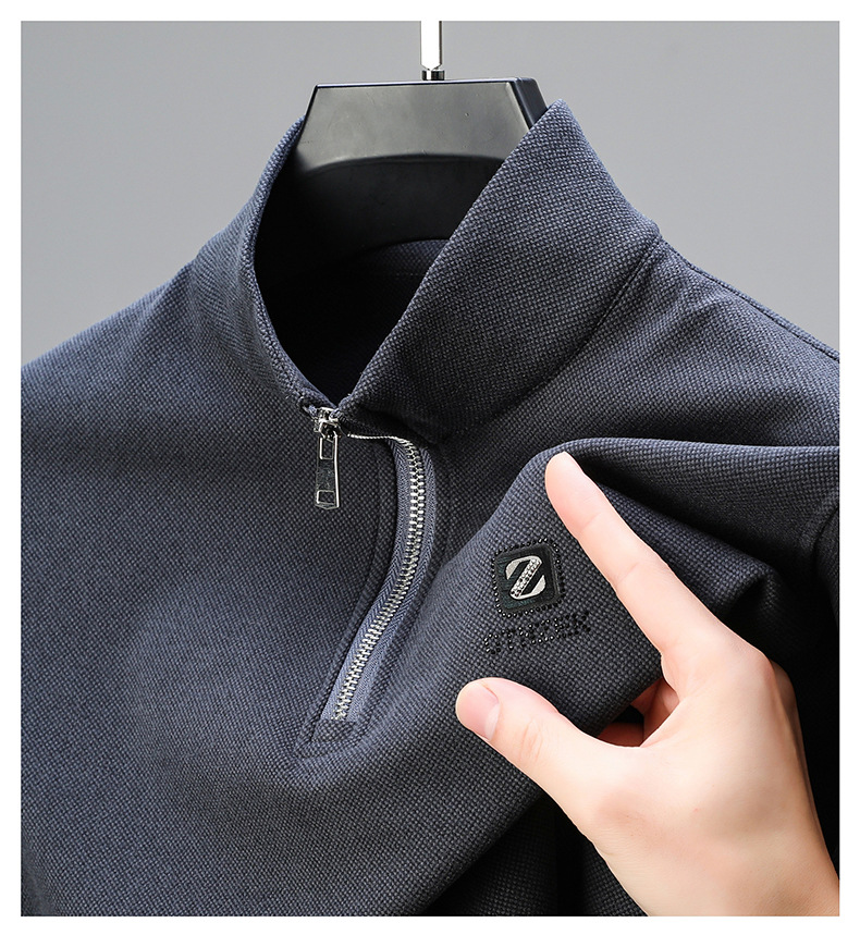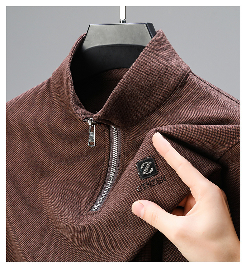 Men's semi-high-neck double-sided fleece long-sleeved sweatshirt