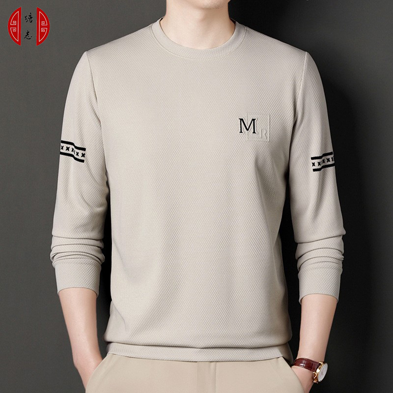 Autumn new 2023 men's long-sleeved hoodie with Korean-style fashion embroidery, loose round-neck top and base layer for men