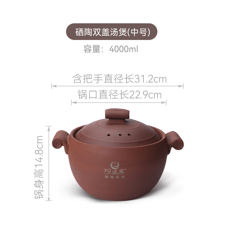 Tao Bao Wang Selenium Double-lid Soup Pot, an old-fashioned unglazed clay pot, high-temperature resistant, open flame gas stove, and a clay pot for stewing dishes