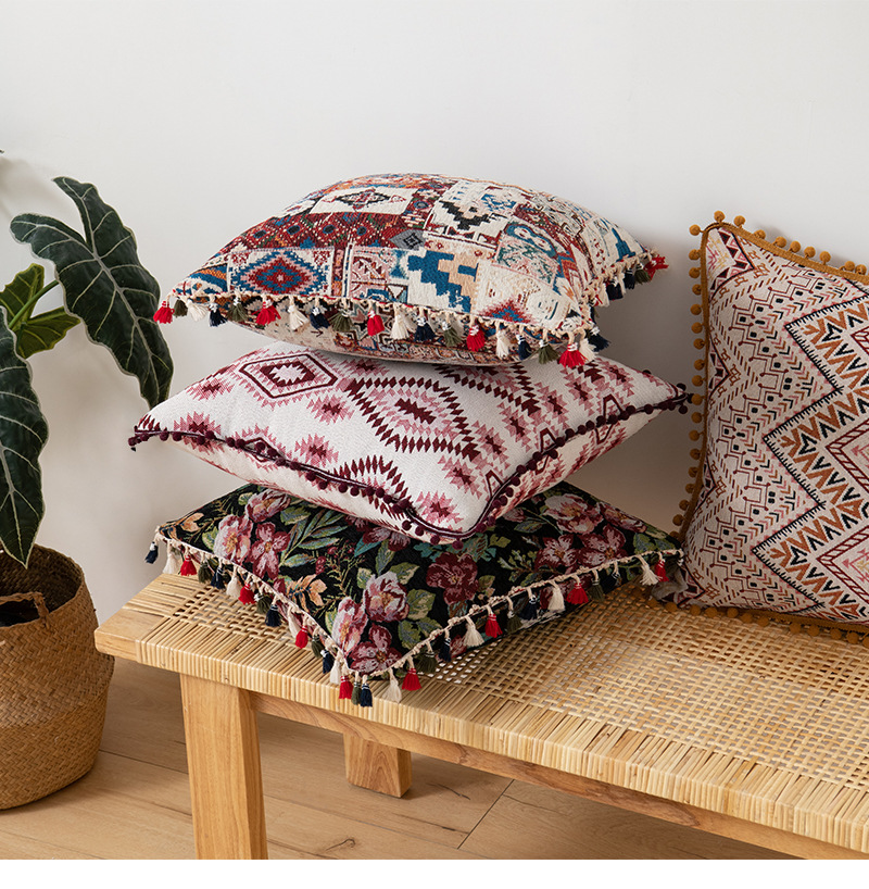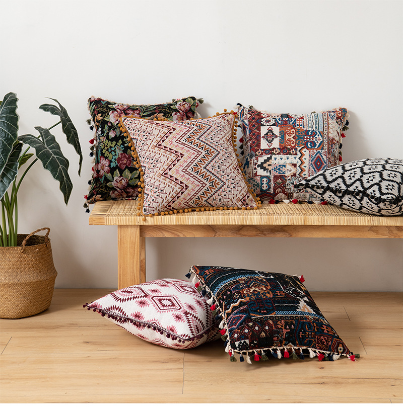 Taobao's best-selling American-style ins Moroccan flower pom-poms geometric throw pillows, cushions and pillowcases