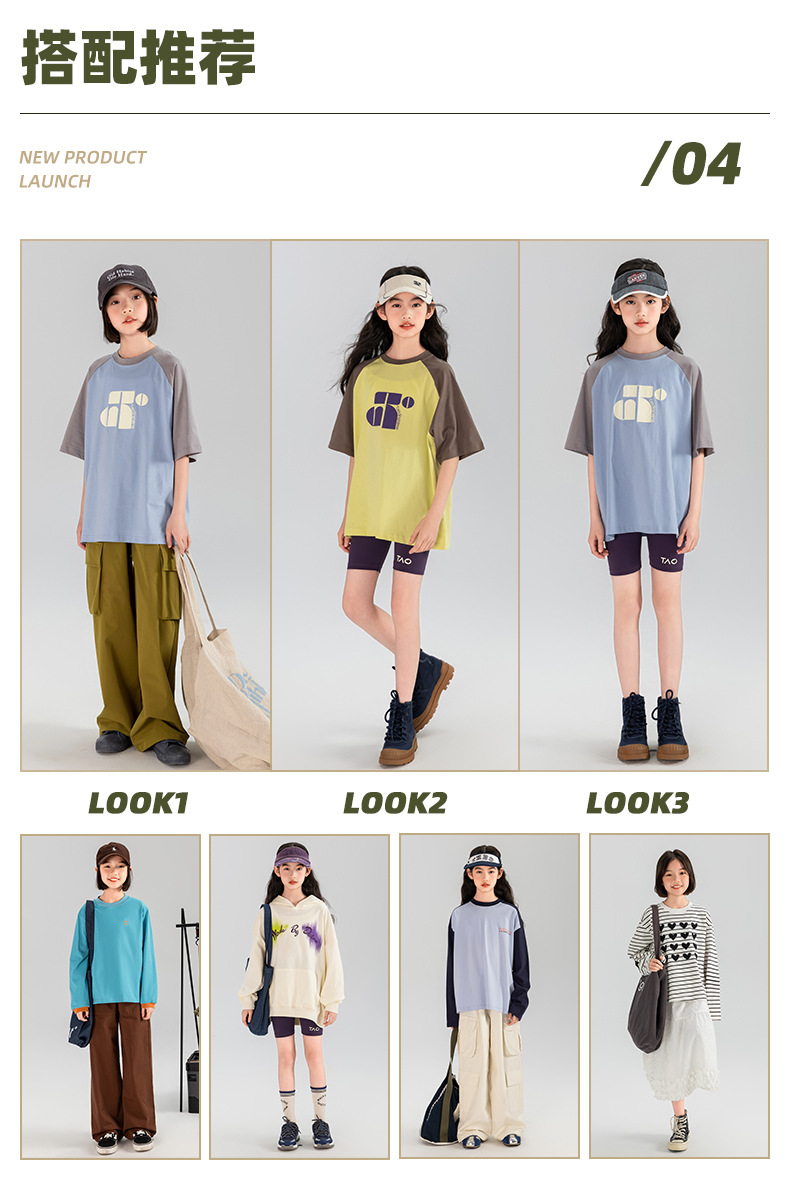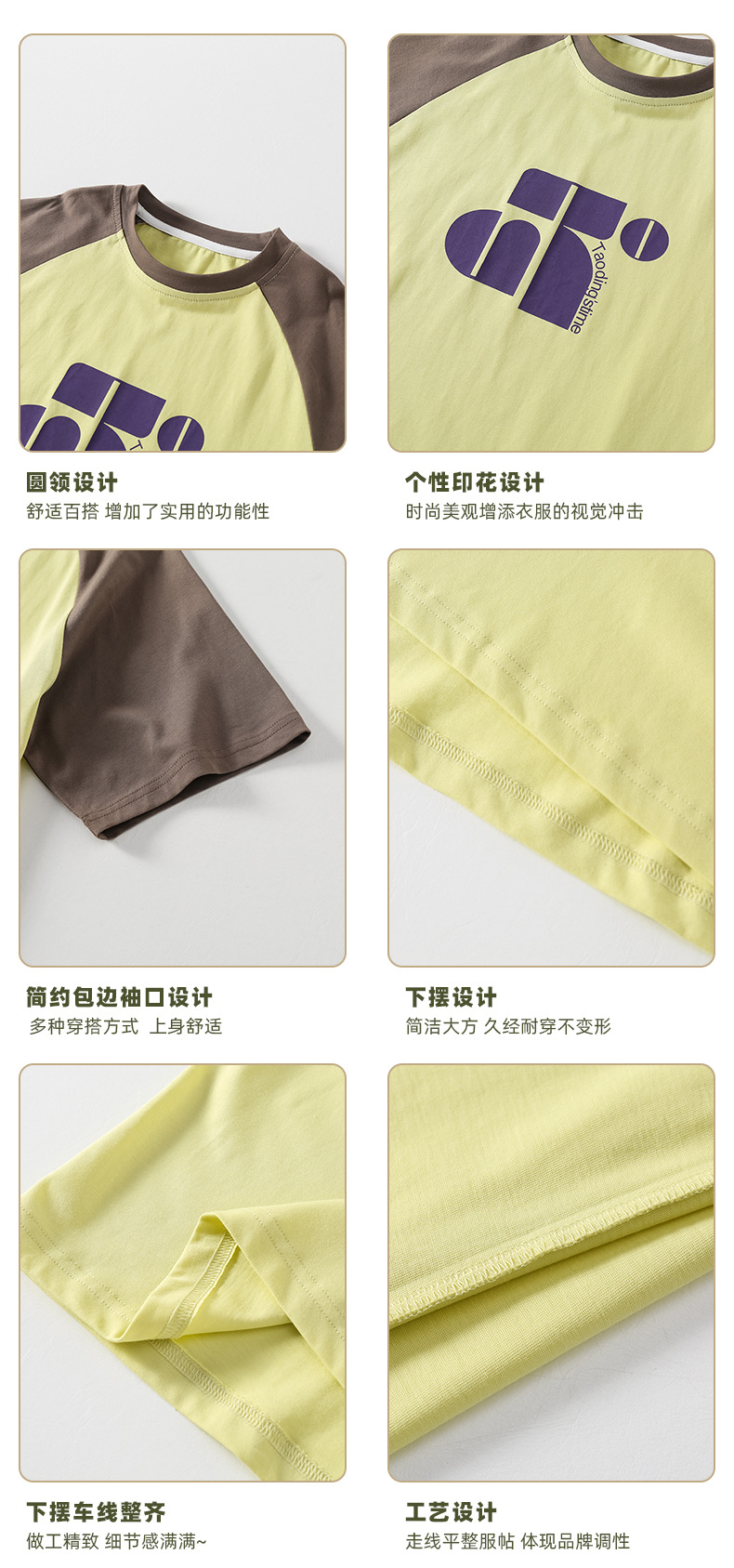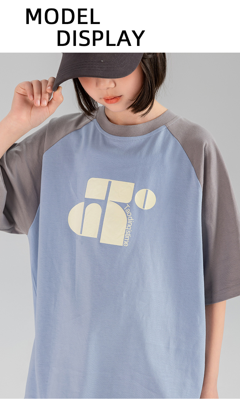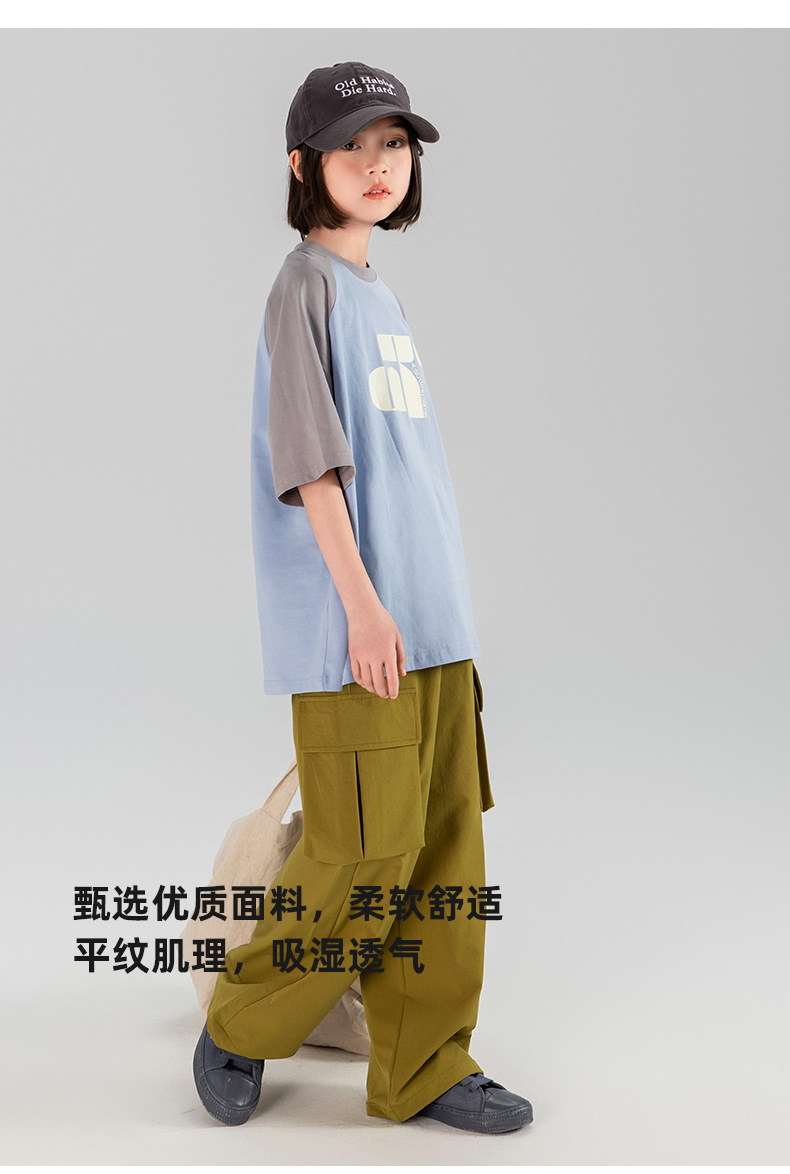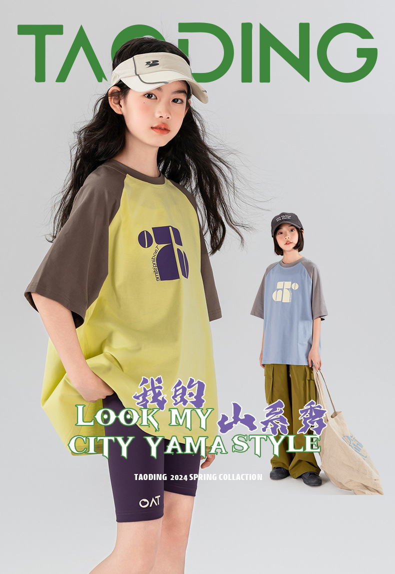 Taotong Girls' T-shirt Summer 2024: American mountain sporty print pure cotton short-sleeved, color-blocking shoulder sleeve