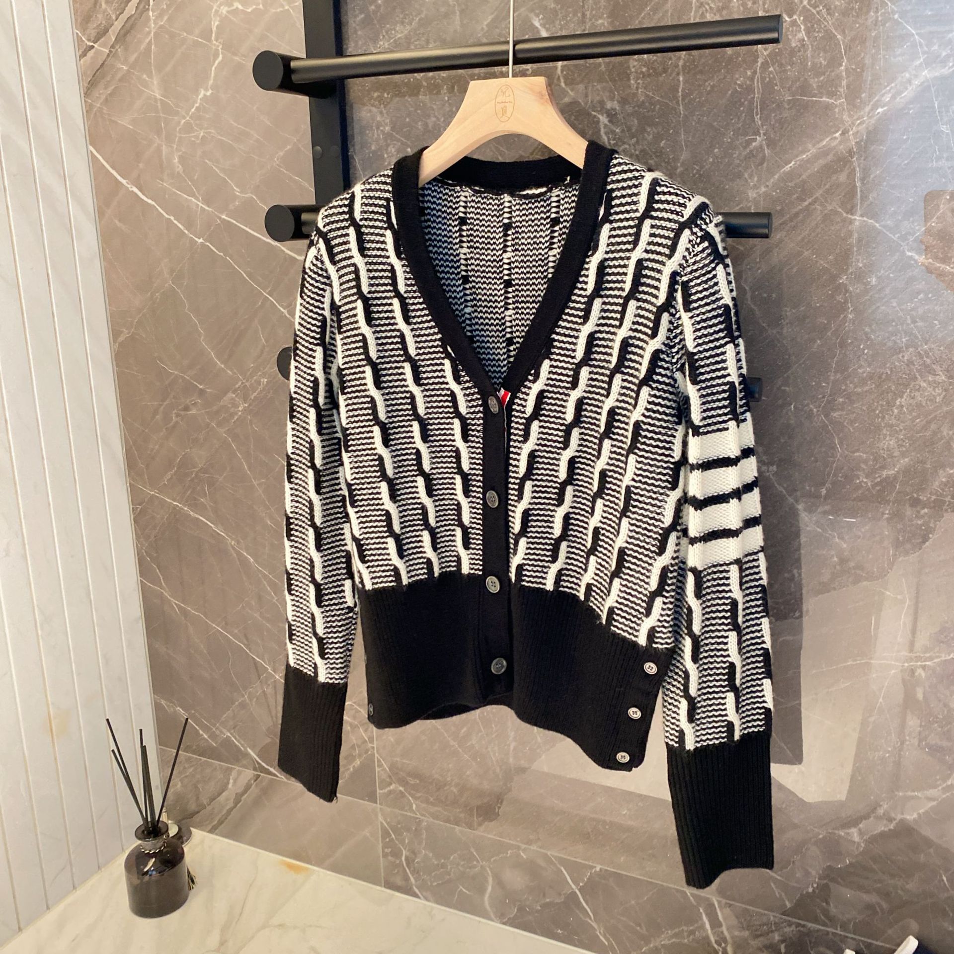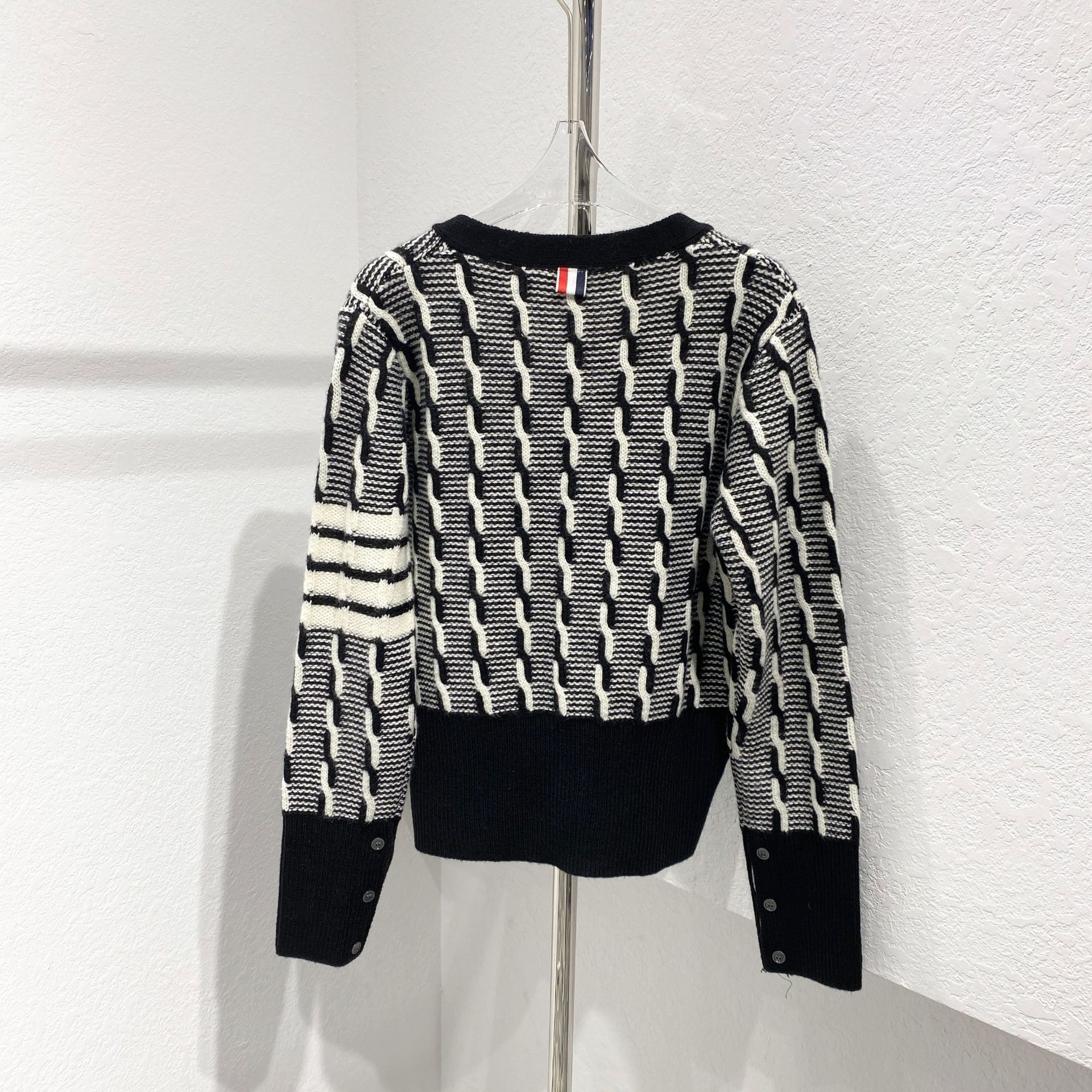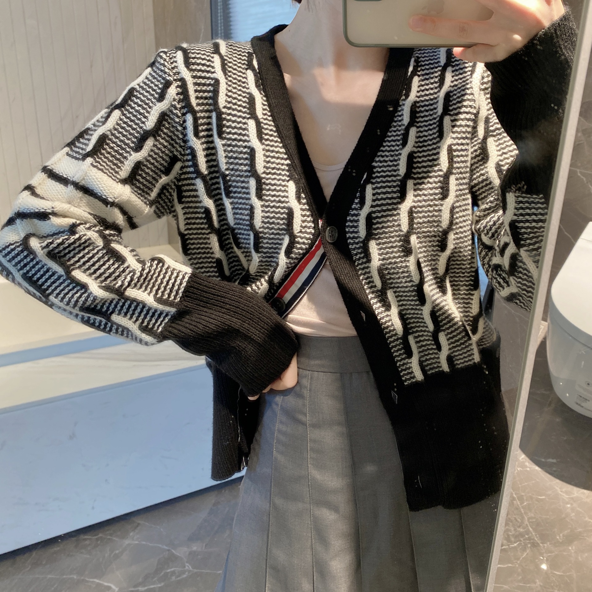tb four-bar women's sweater coat V-neck cardigan Autumn/Winter 2023 new style twisted knit cardigan short top