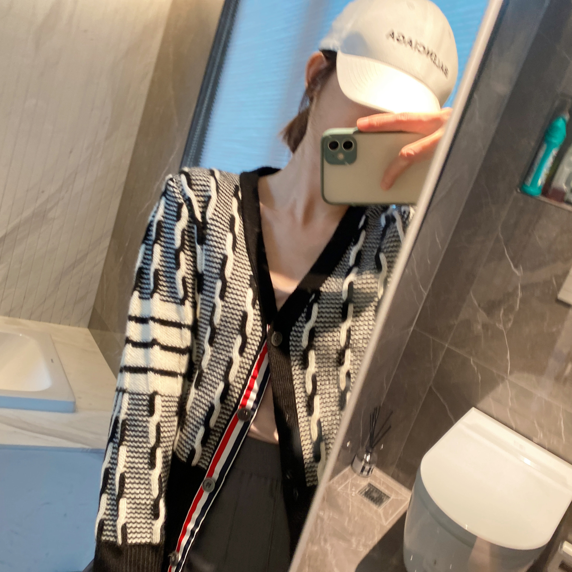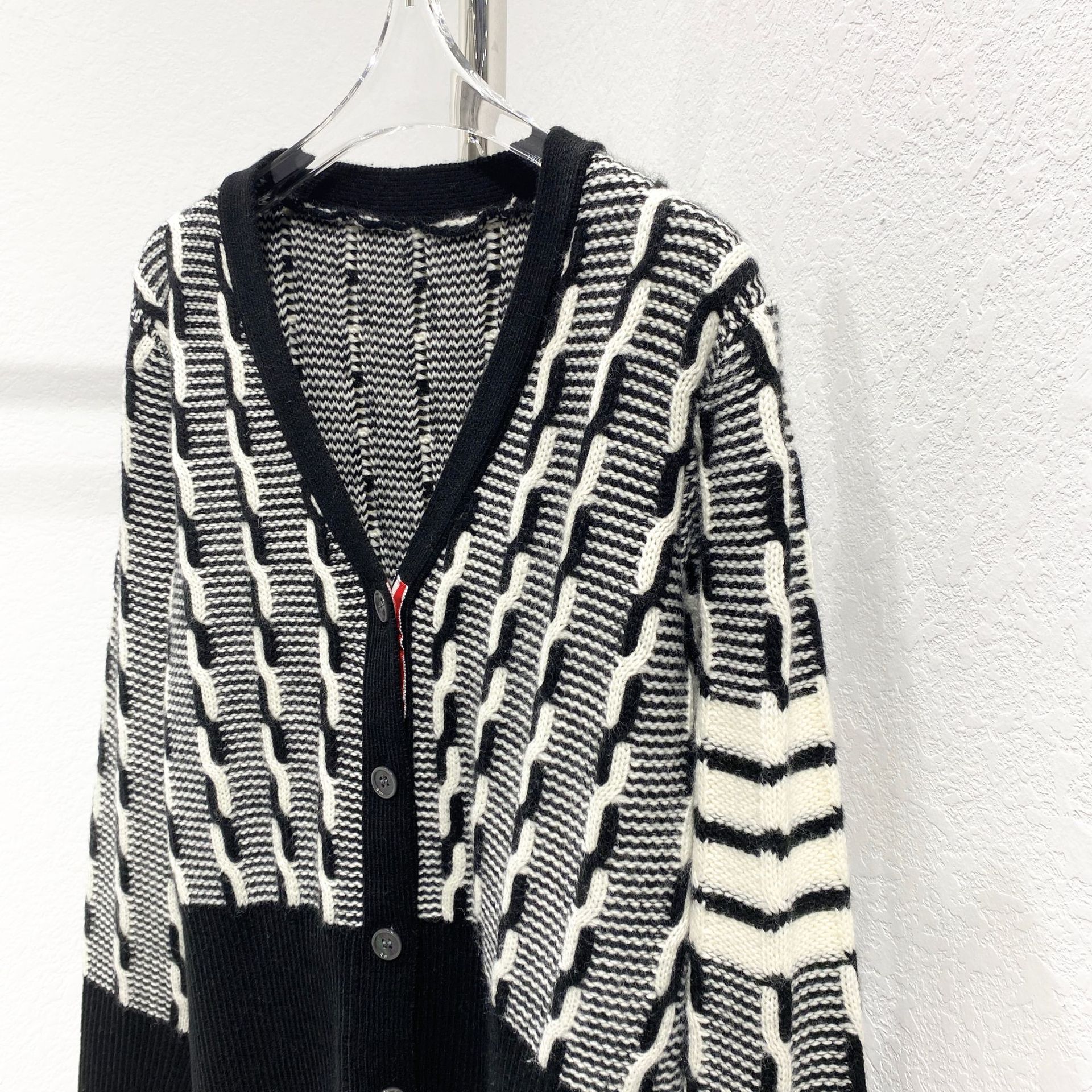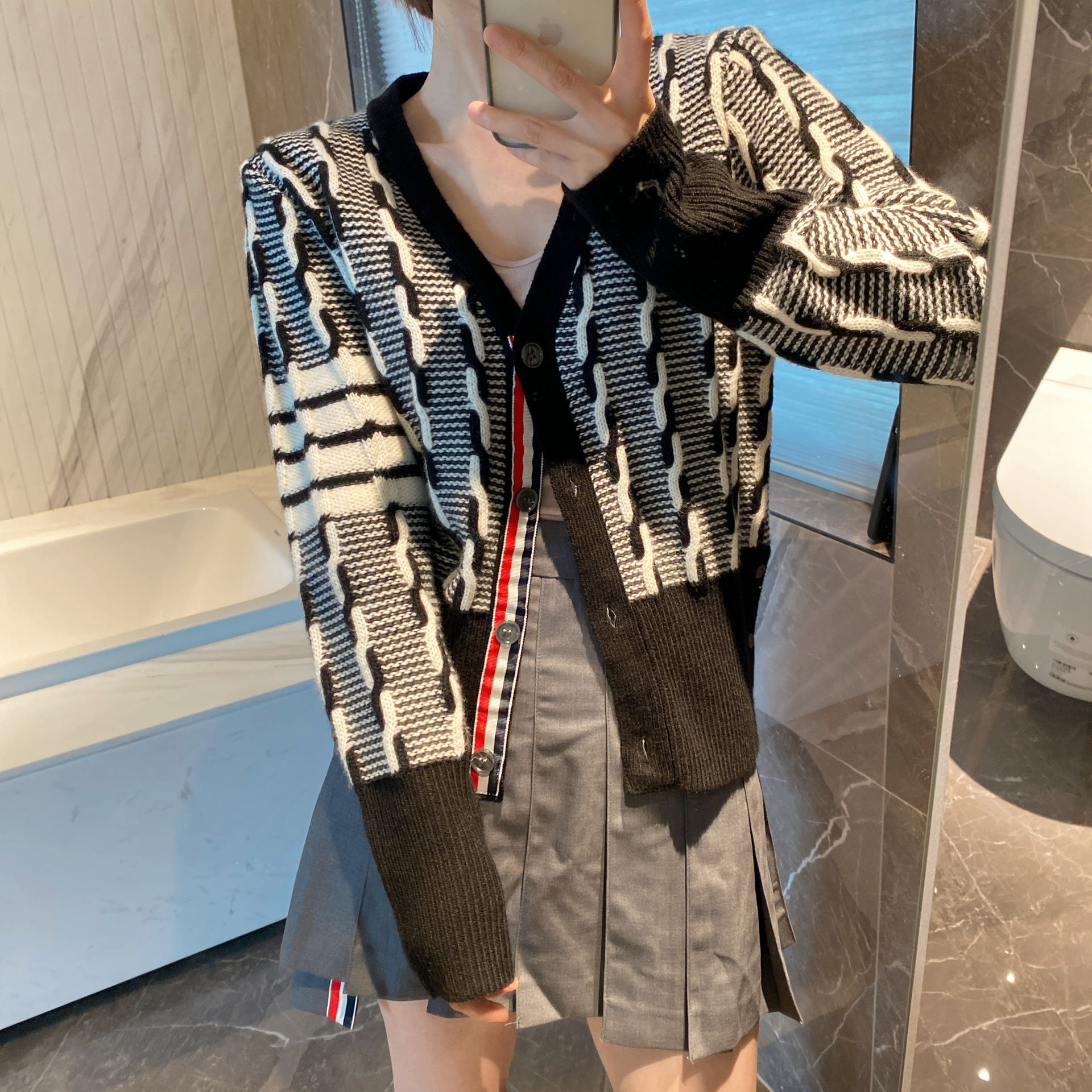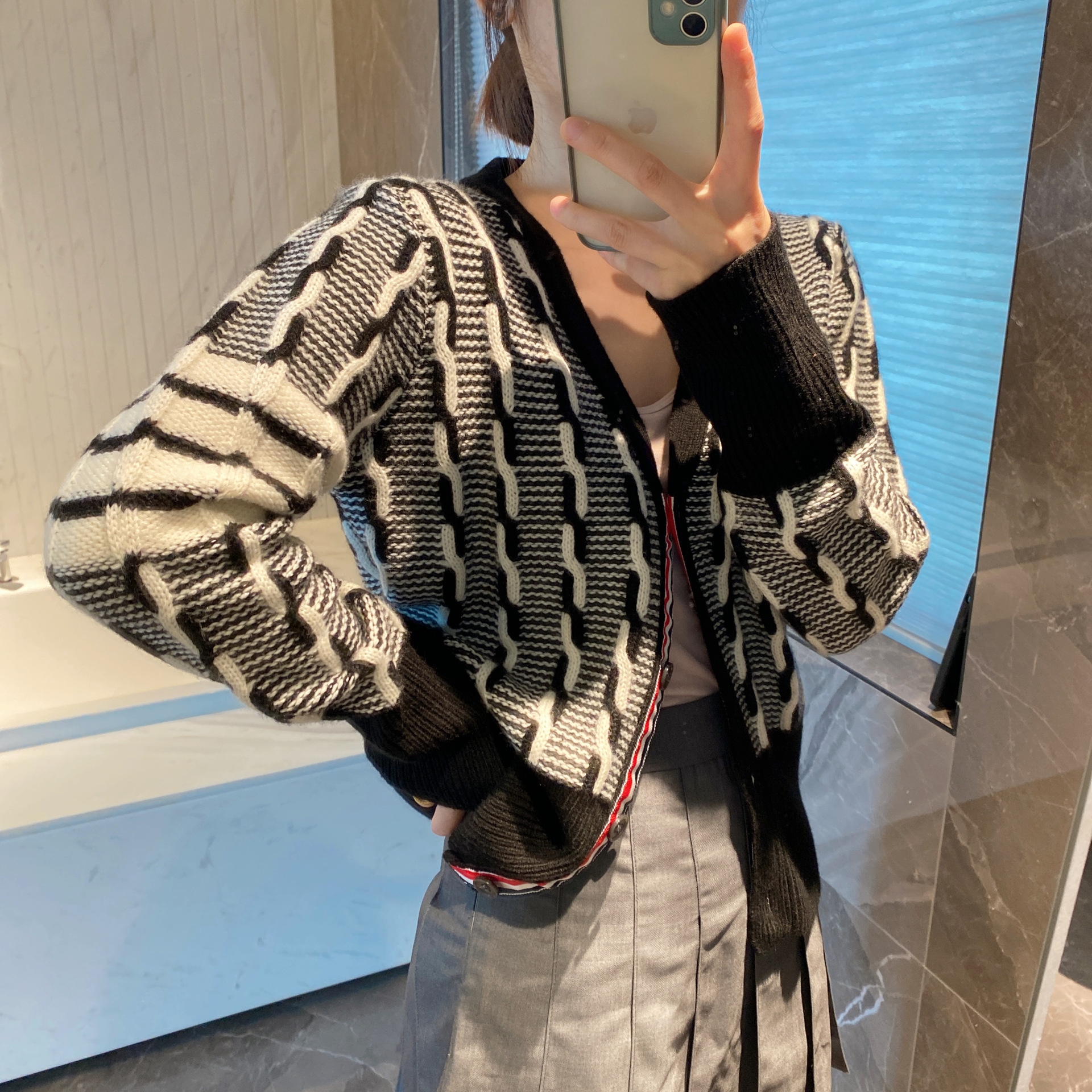 tb four-bar women's sweater coat V-neck cardigan Autumn/Winter 2023 new style twisted knit cardigan short top