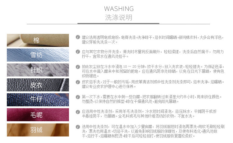 washing: Hand washing is recommended. The water temperature should not exceed 30°C