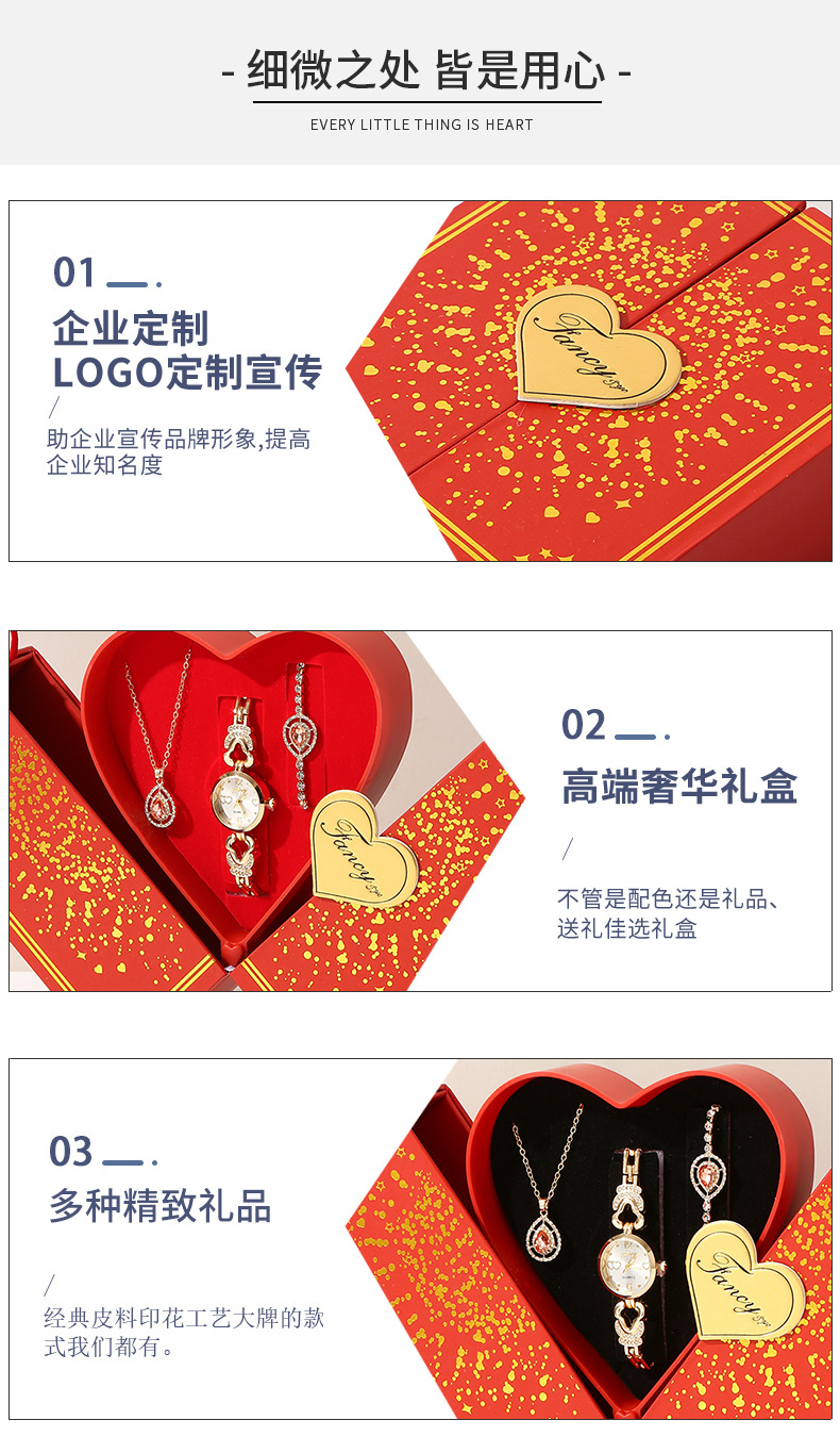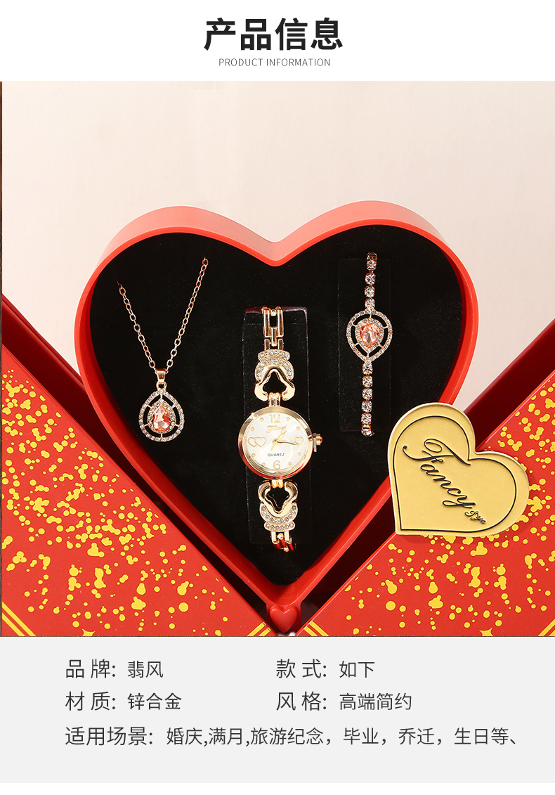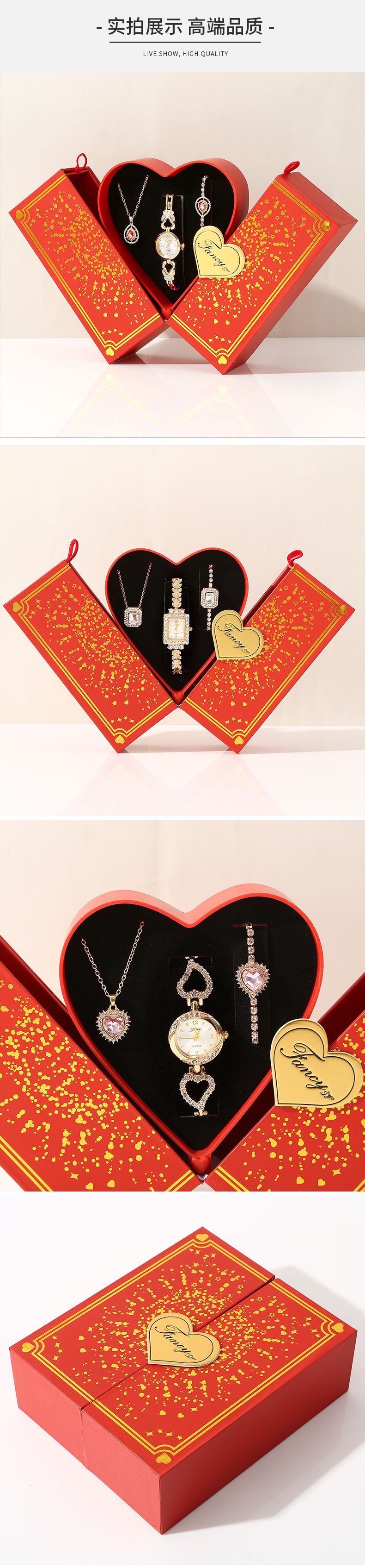 Teachers' Day, Qixi Festival and Valentine's Day gift set: Fashionable and light luxury jewelry set, heart-shaped metal watch bracelet gift box