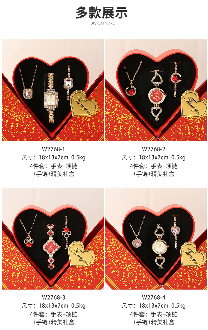【w2768-5】 4-piece Set (Necklace + Bracelet + Watch + gift Box)