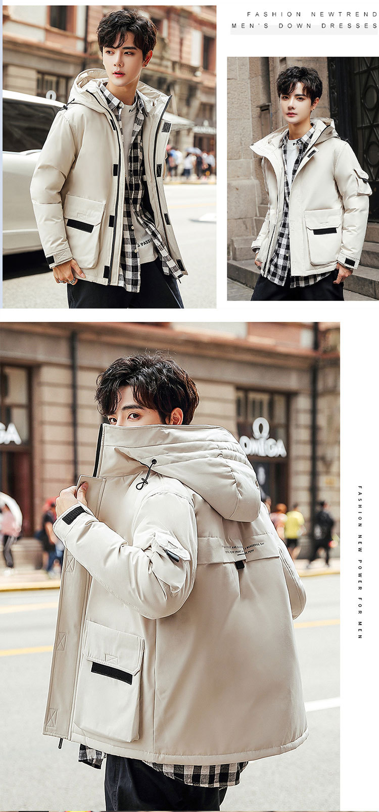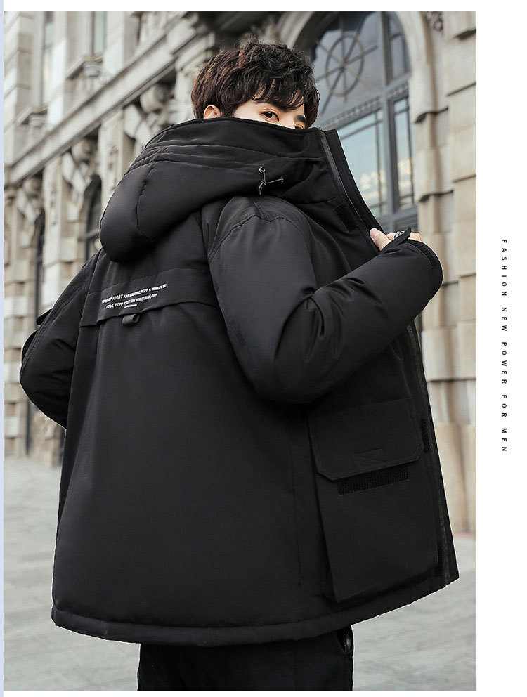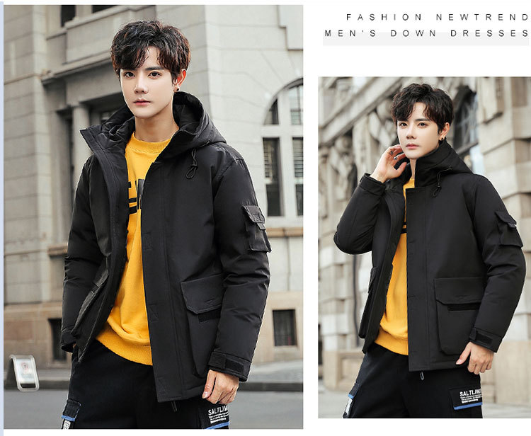 Teenage men's down jackets, short, thickened winter hooded jackets, workwear, large-sized student casual winter wear trend