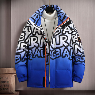 2022 New men's down jacket, short and thick stand-up collar gradient winter coat, trendy for teenagers, one-piece consignment