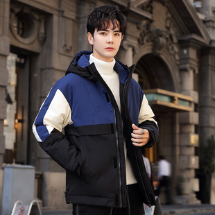 One-stop delivery of new men's winter color-blocked thickened down jackets, men's winter coats for teenagers and students, cross-border
