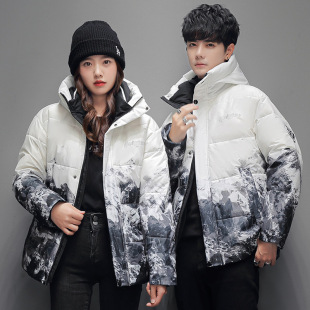 2022 New style of men's down jacket for young men, short hooded winter thickened coat, couple's snow mountain large-sized winter wear