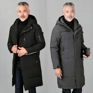 Middle-aged and elderly men's down jackets, men's mid-length winter coats, thick-sized hooded winter clothes, middle-aged dad's clothes