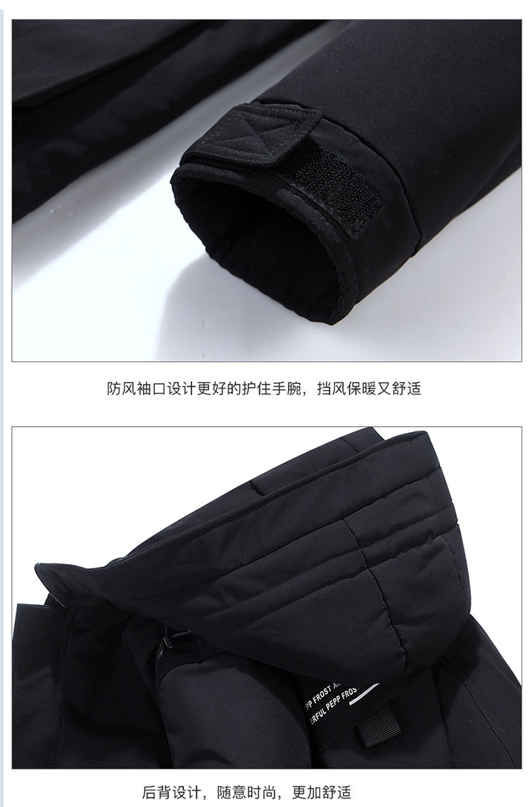 Youth winter men's down jacket, men's slimming mid-length thickened winter coat, casual hooded for teenagers and students