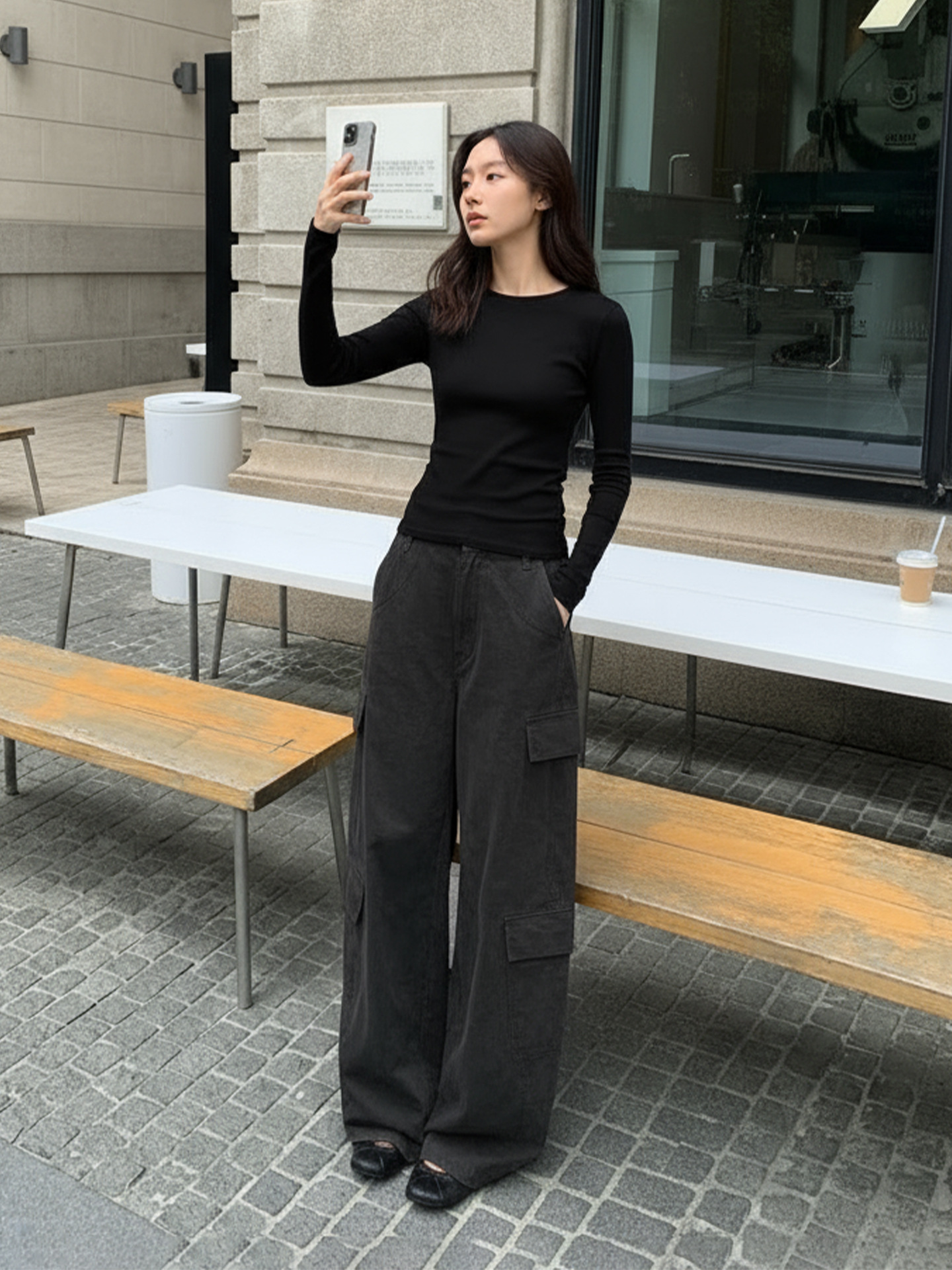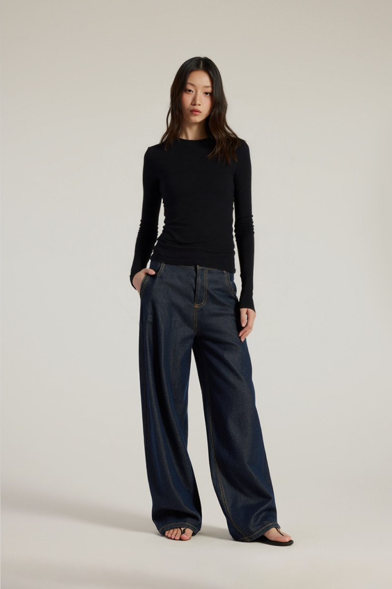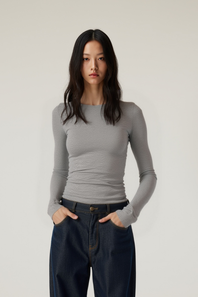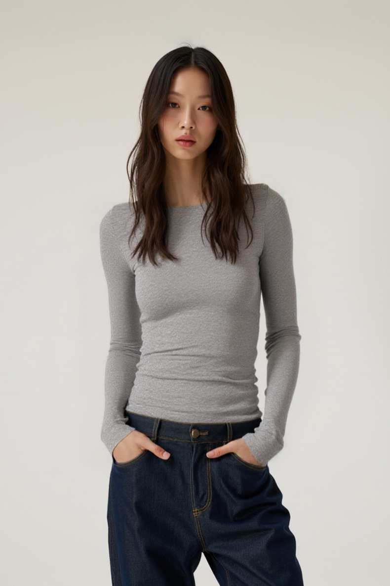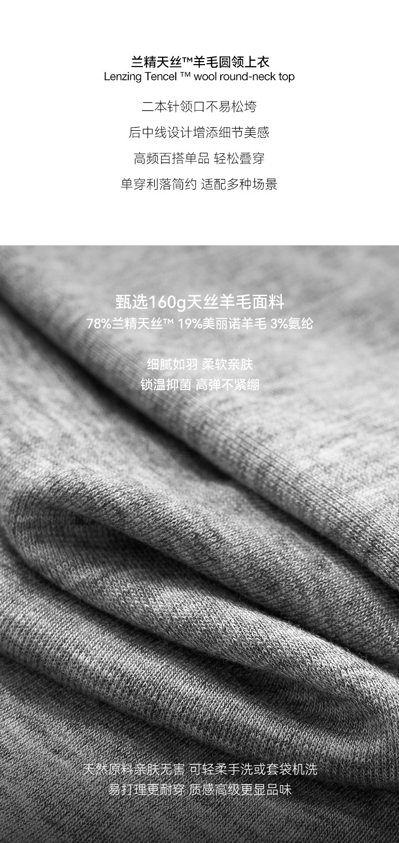 teeshe women's Lanjing Tian Wool round-neck long-sleeved top 25 Autumn Spice Waist-cinching and slimming base layer