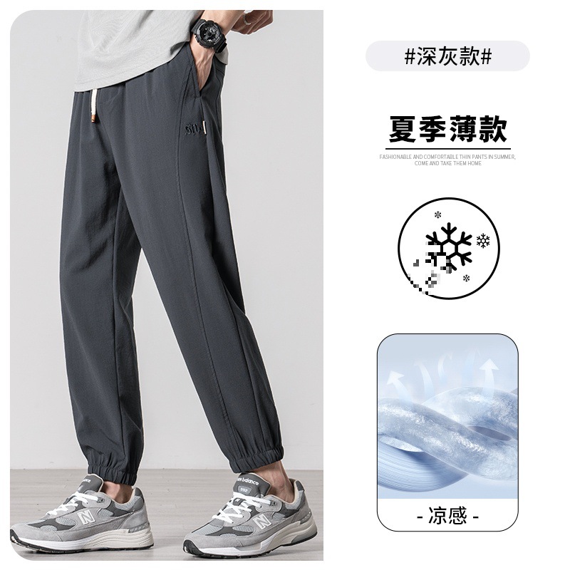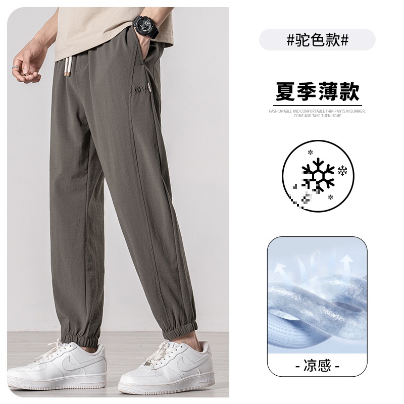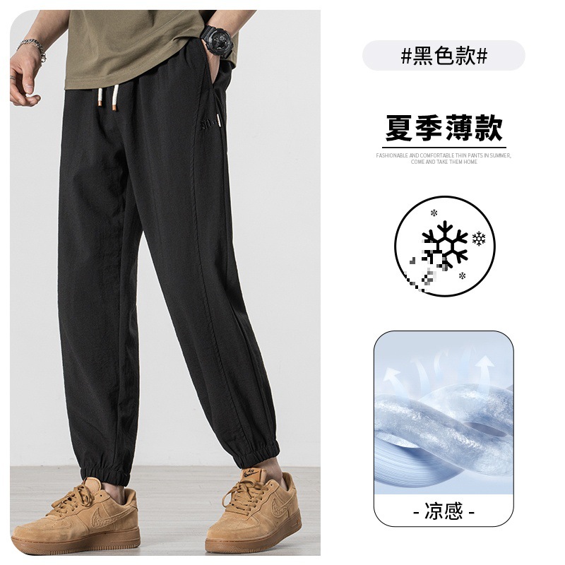 Tencel linen pants Men's summer thin style 2024 new sporty ice silk pants Men's casual 9-inch long pants