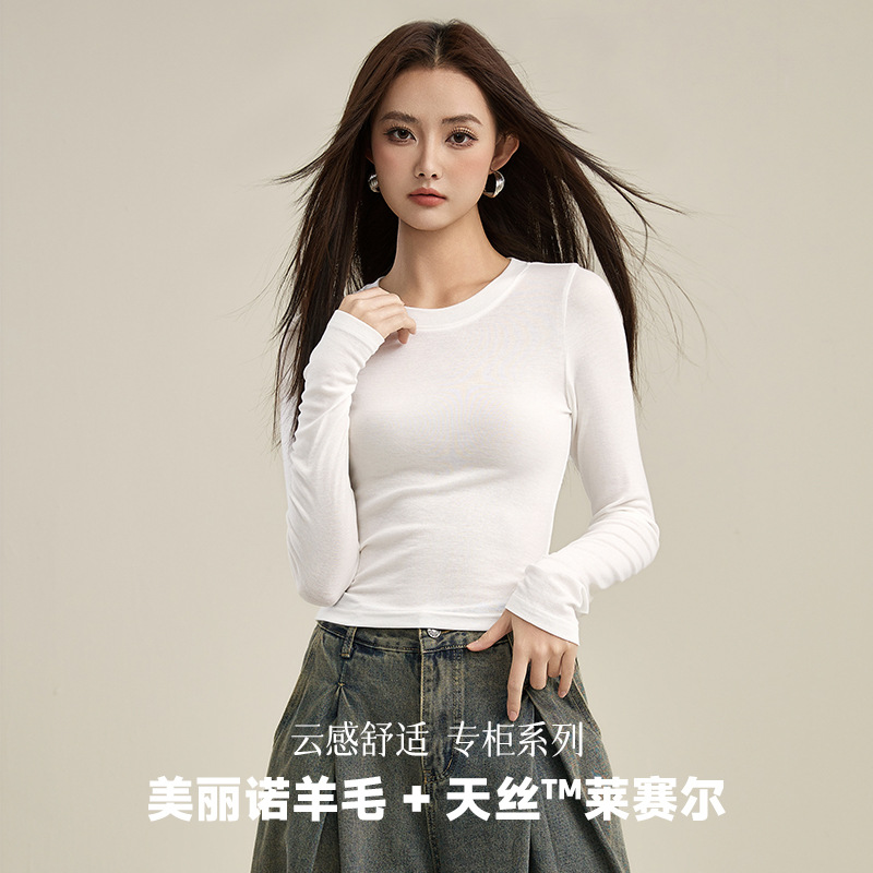 A thin, long-sleeved T-shirt made of Tencel wool and skin-like skin, new spring 2025 style, with a round neck base layer and an inner top