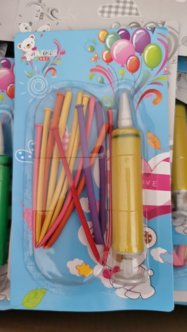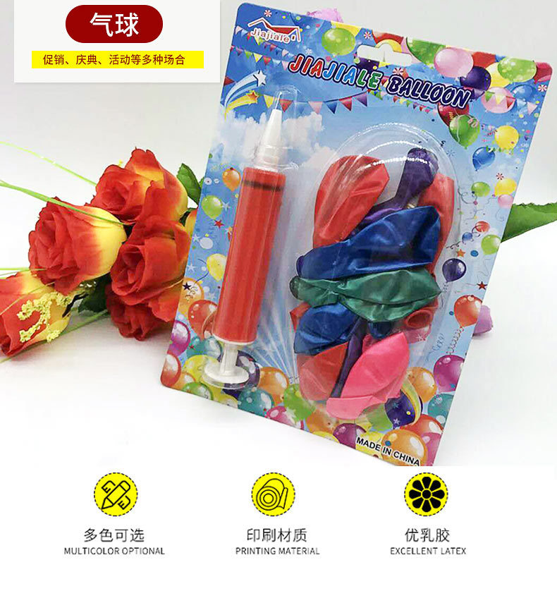 The 2-yuan store's street stall specializes in selling small packages of balloons with air cylinders, children's toys, and multi-color balloon party toys for children