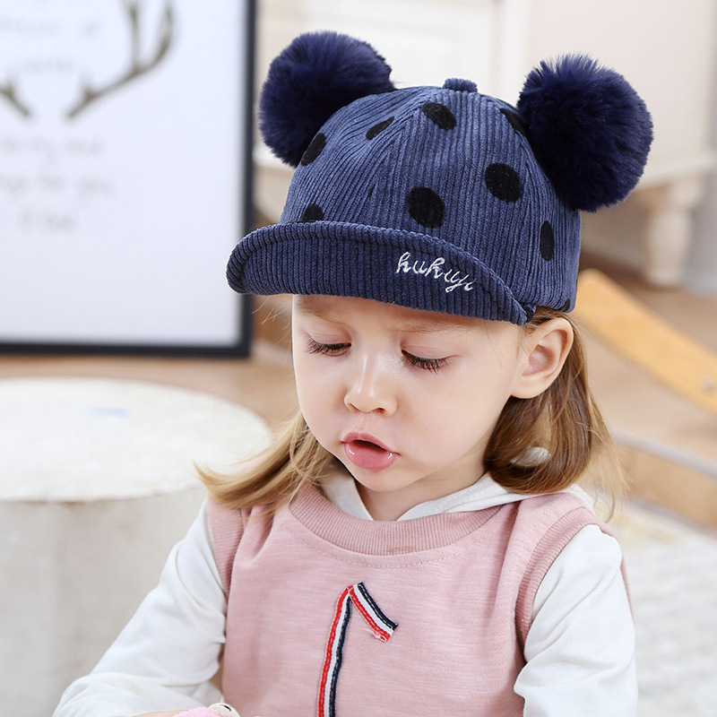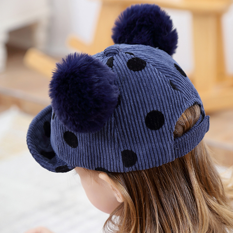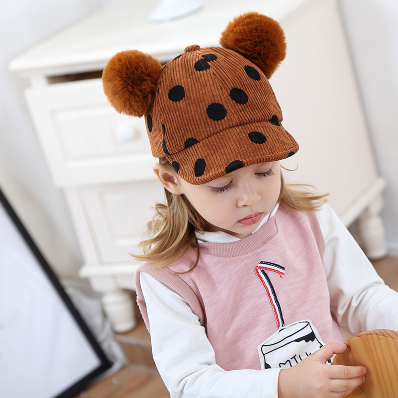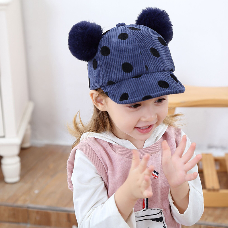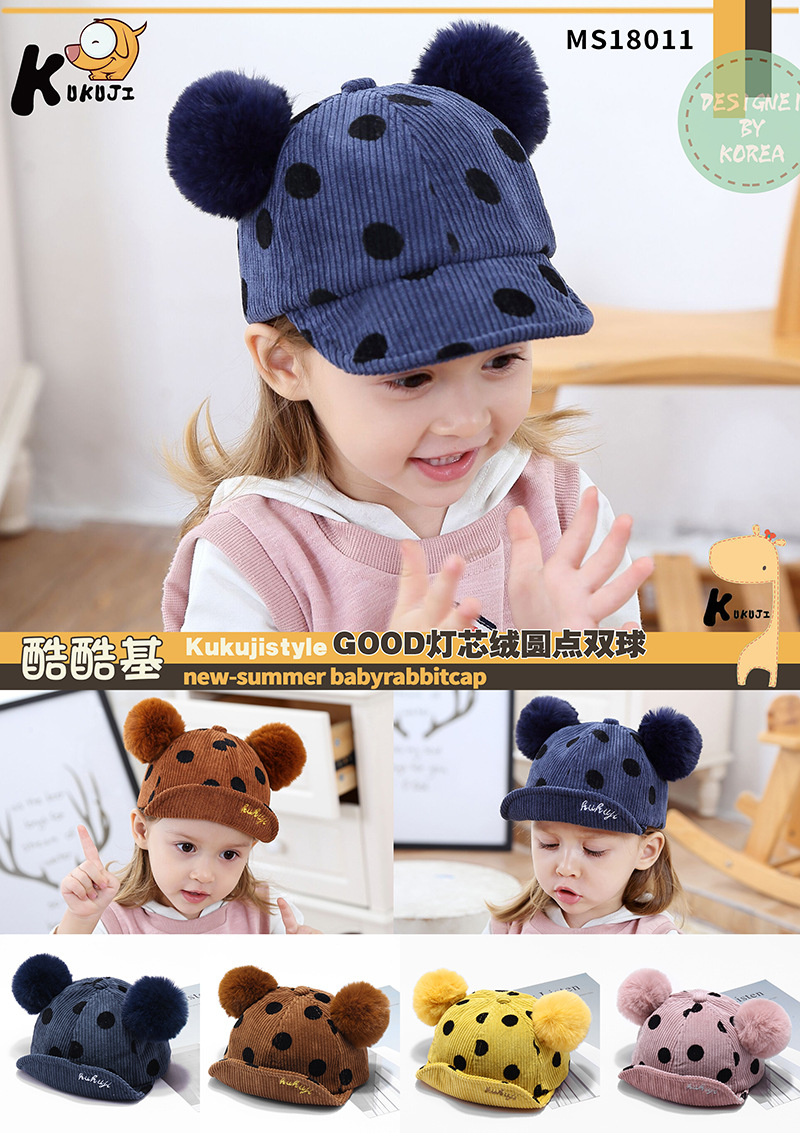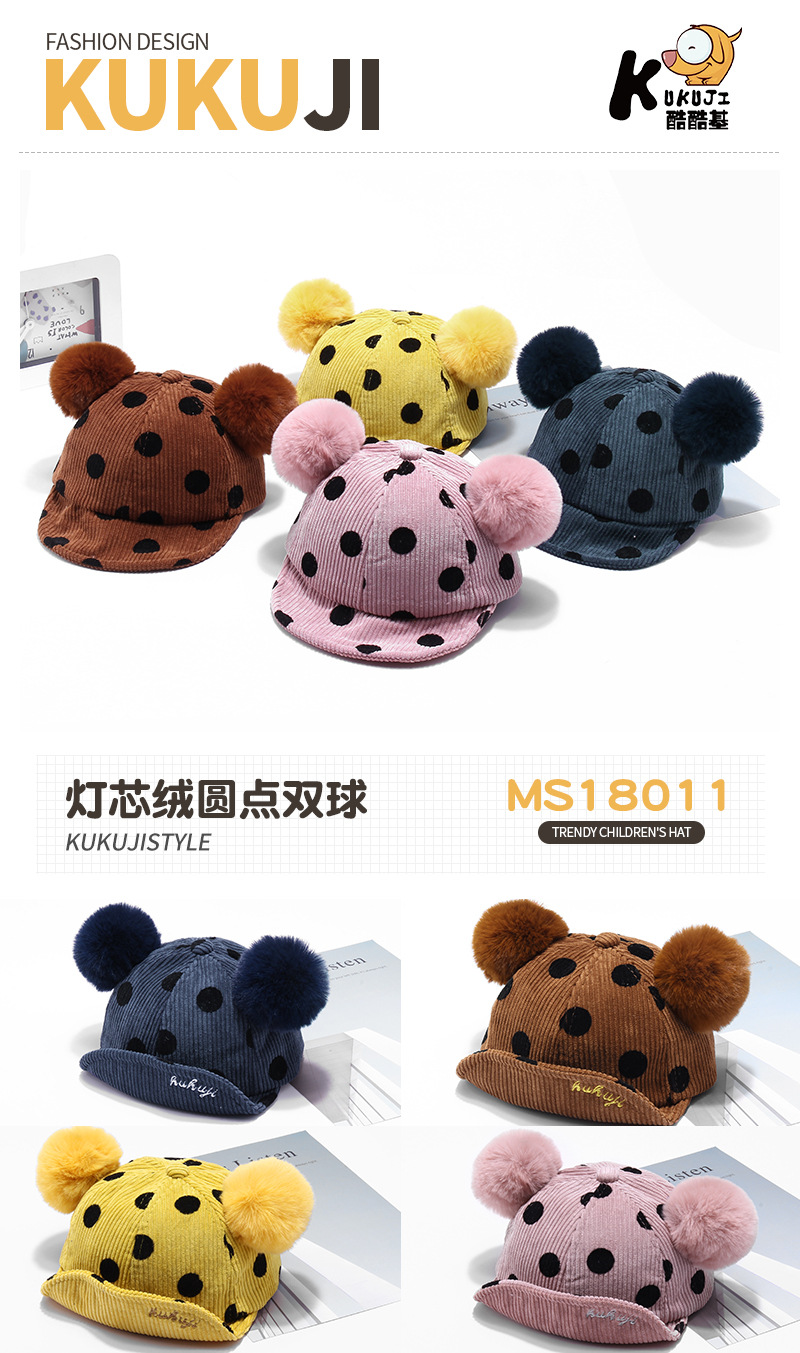 Name: 2018 Autumn New KUKUJI Corduroy Polka Dot Double Pom-ball Children's Cap, a cutting-edge and popular baseball cap