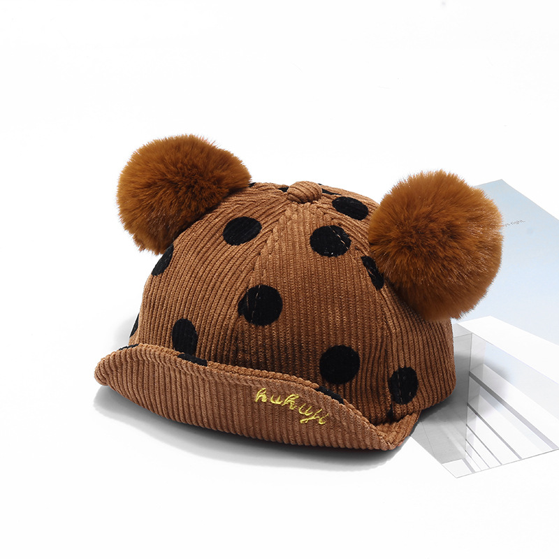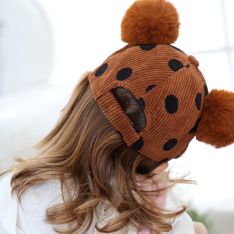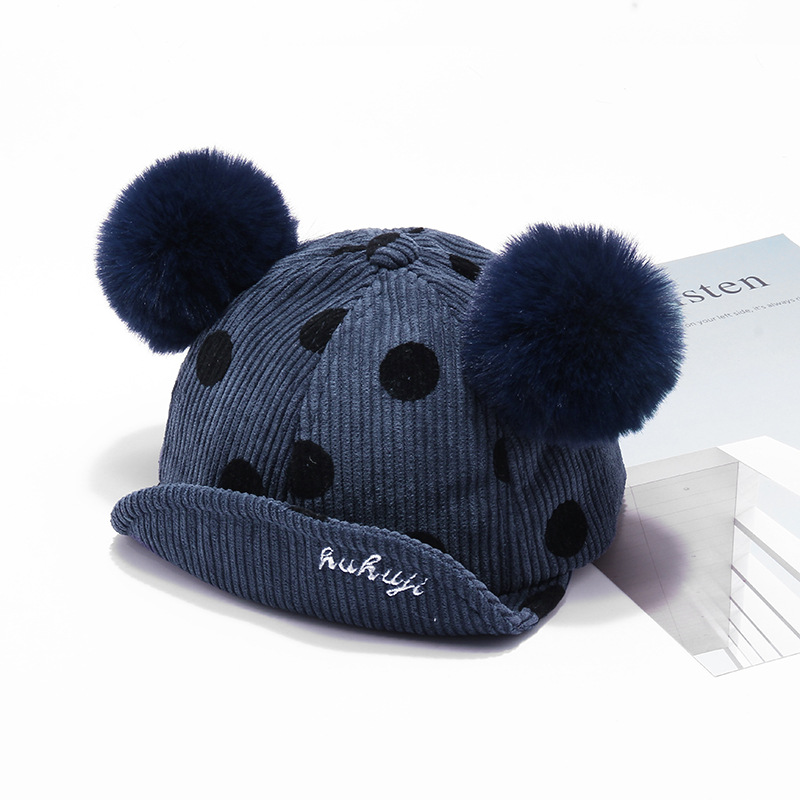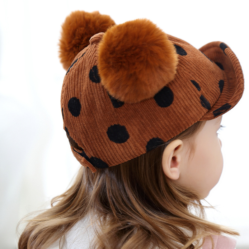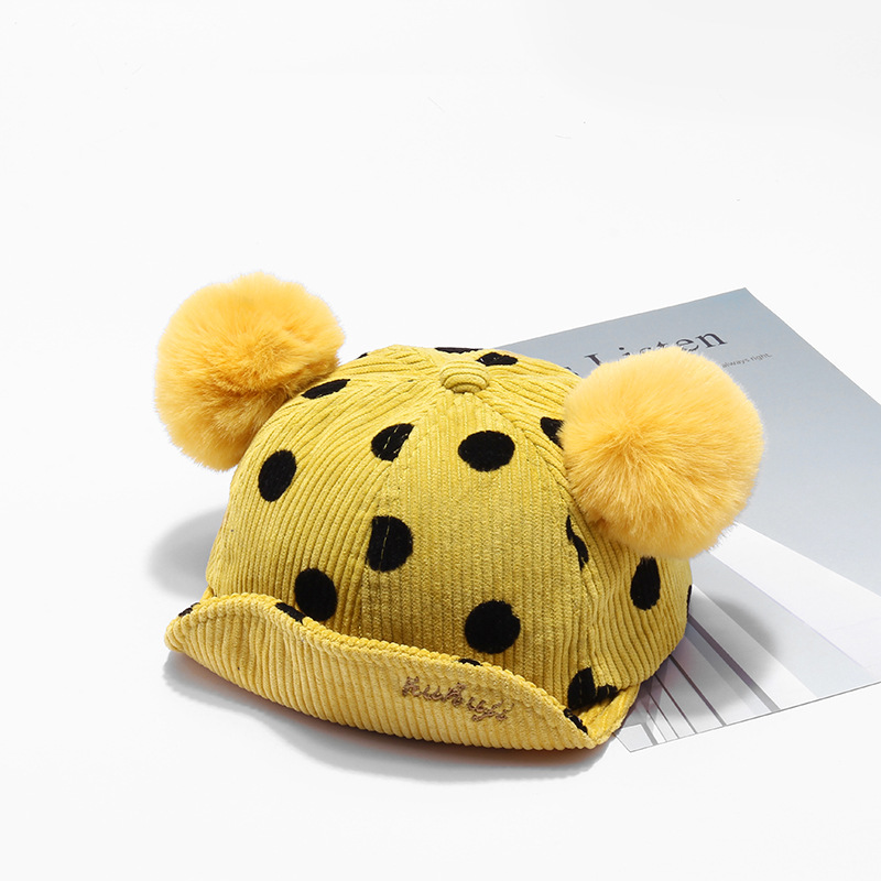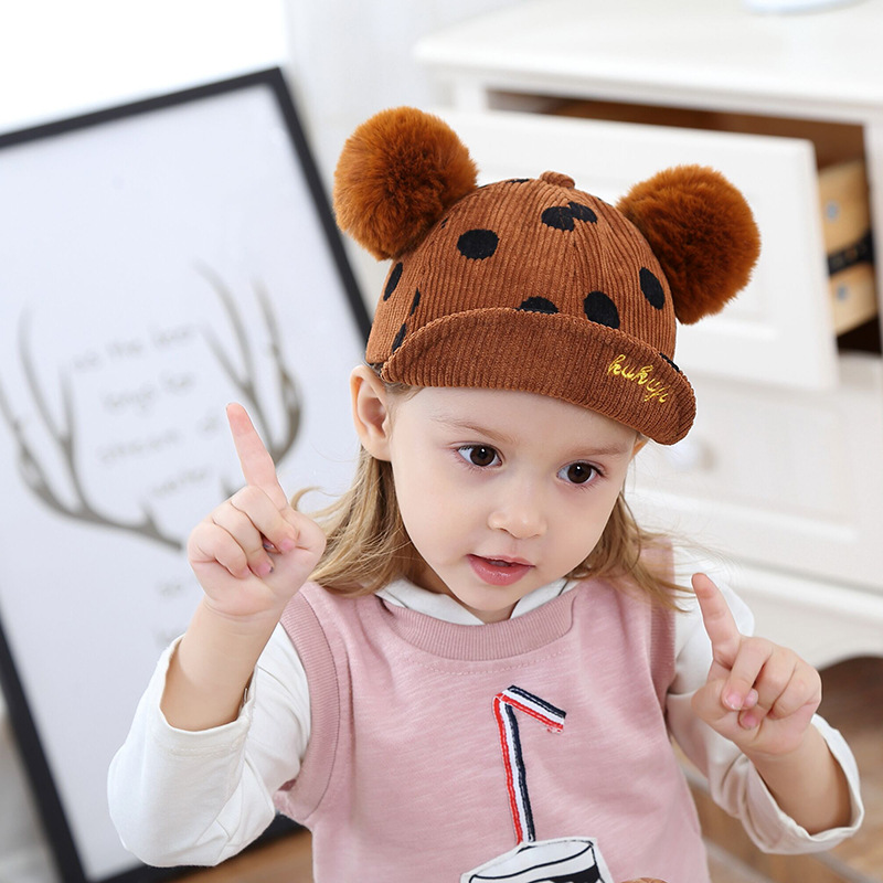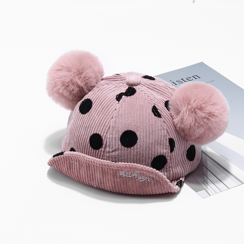 Name: 2018 Autumn New KUKUJI Corduroy Polka Dot Double Pom-ball Children's Cap, a cutting-edge and popular baseball cap