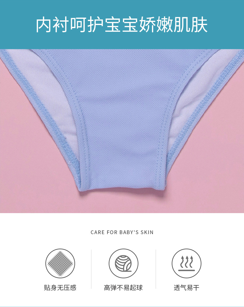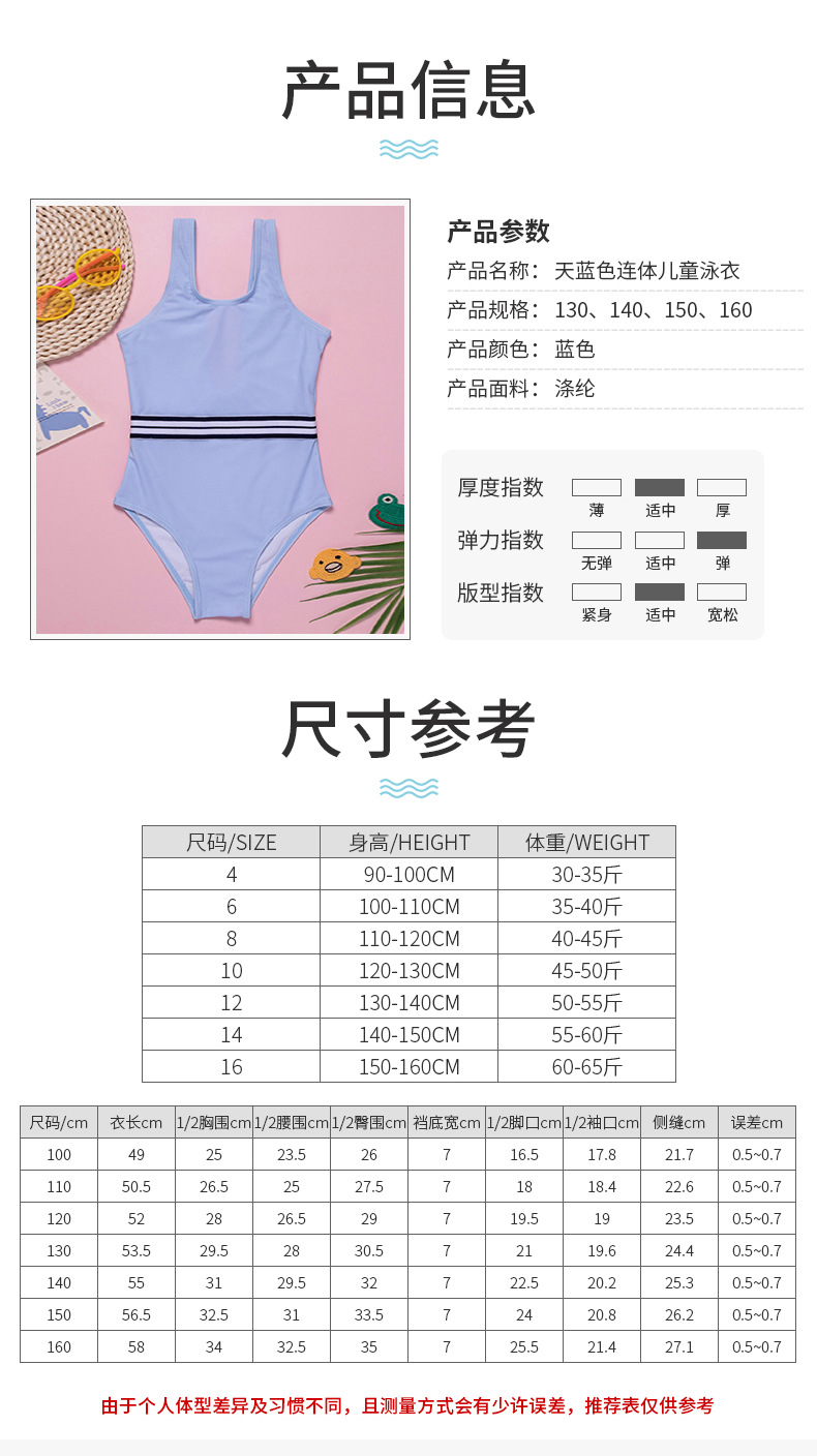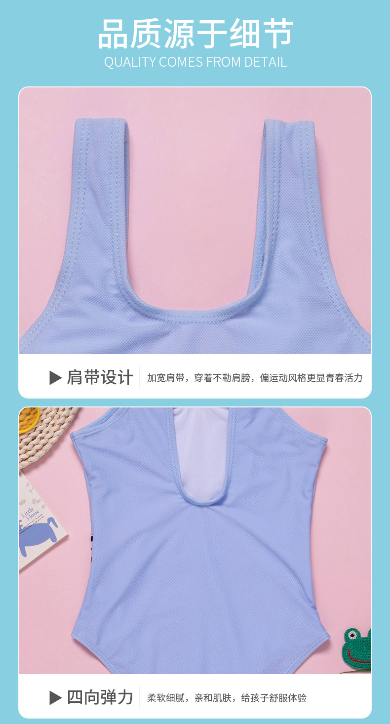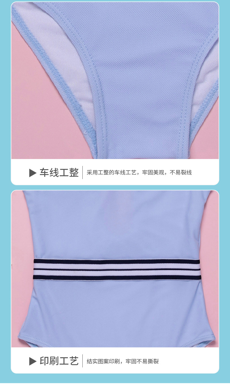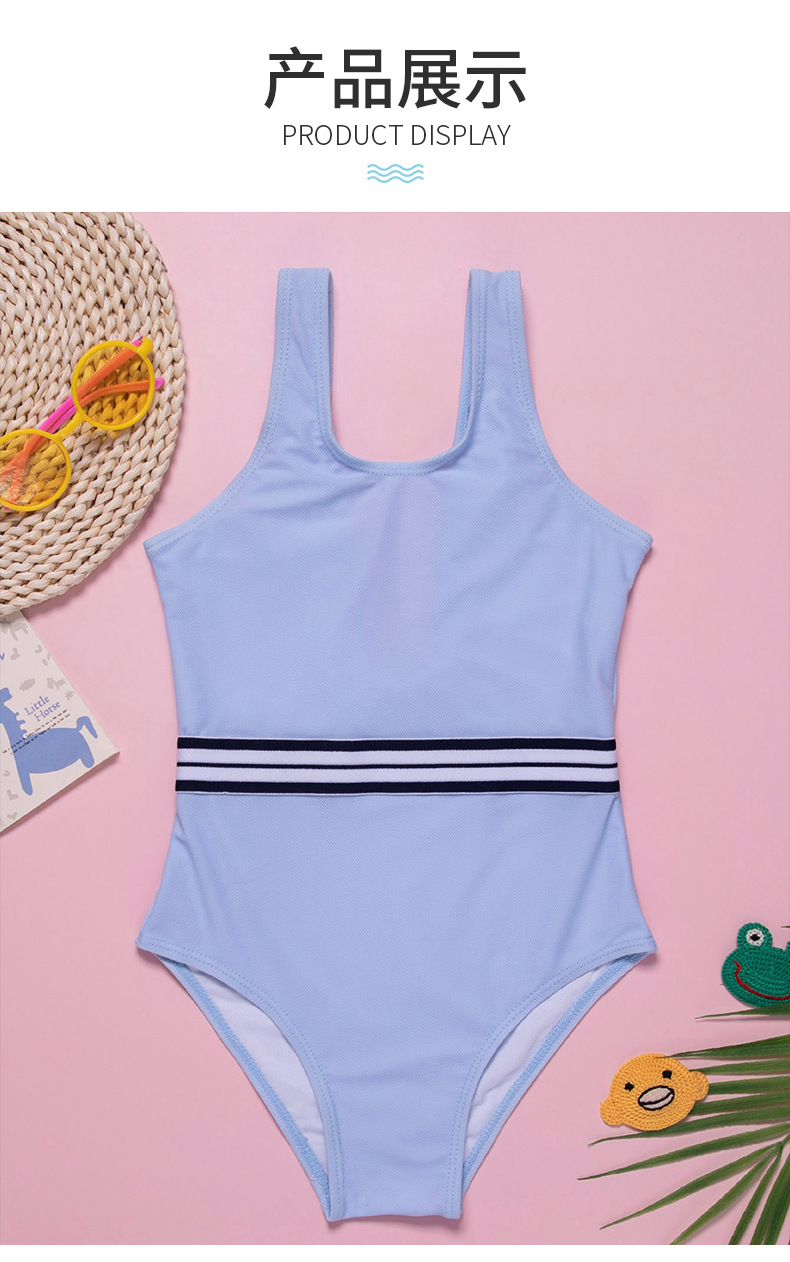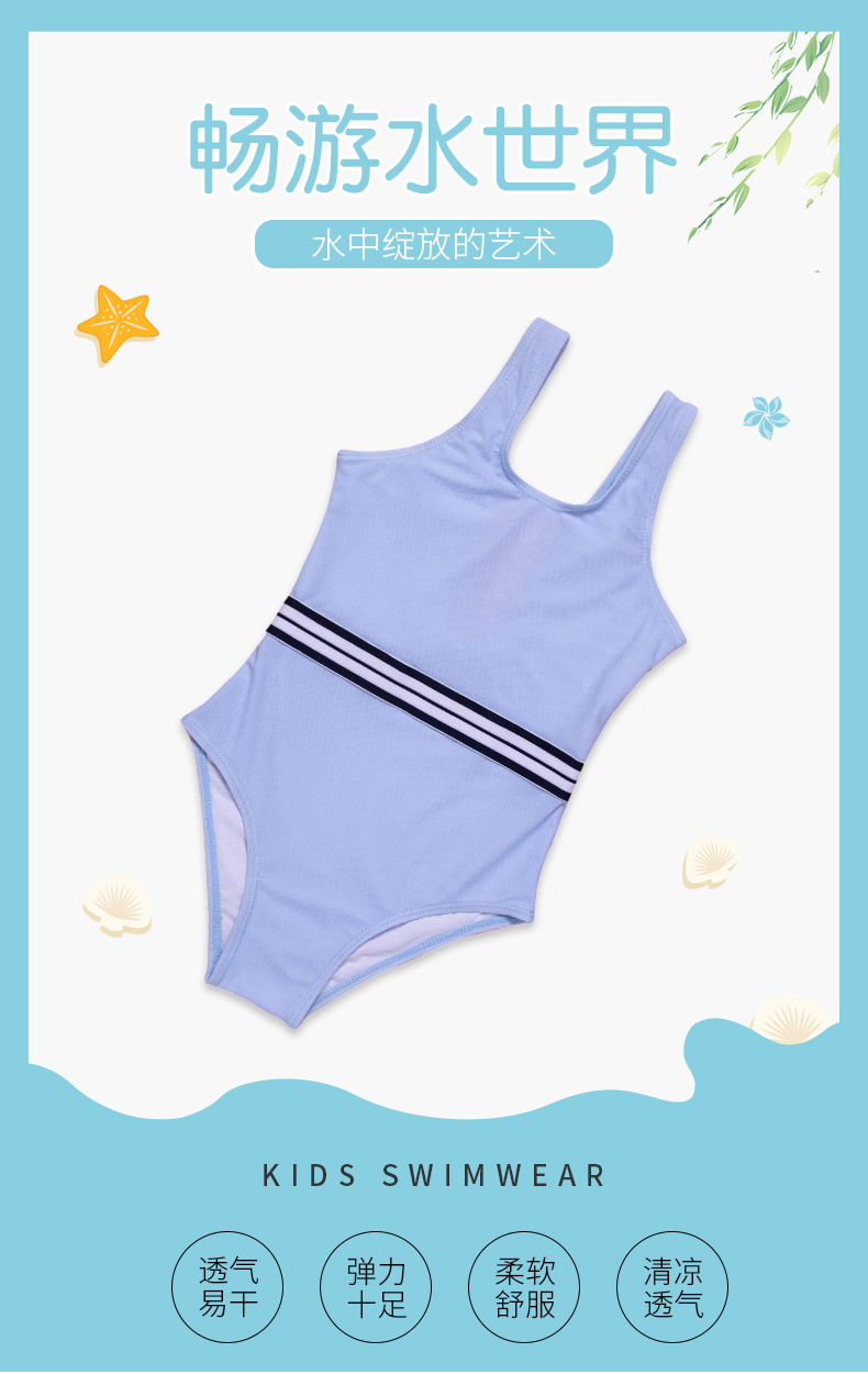 The 2020 new blue striped girls' slimming and belt-covering swimsuit for children's one-piece swimsuit export