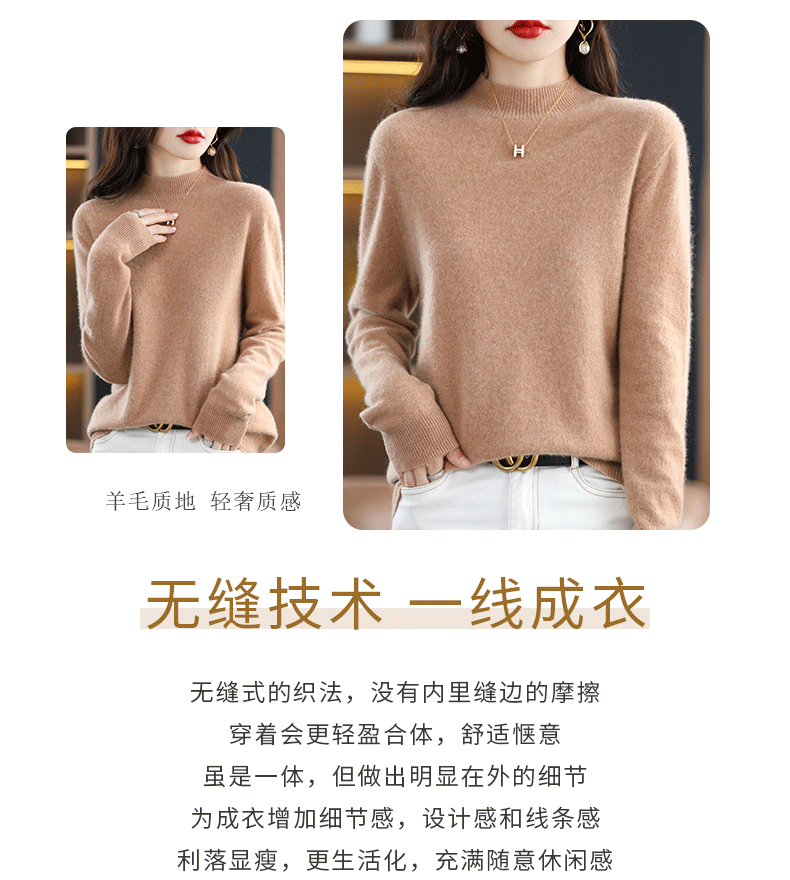 The 2022 new first-line ready-to-wear autumn and winter short pullover sweater and pure wool semi-high neck women's cashmere sweater are versatile