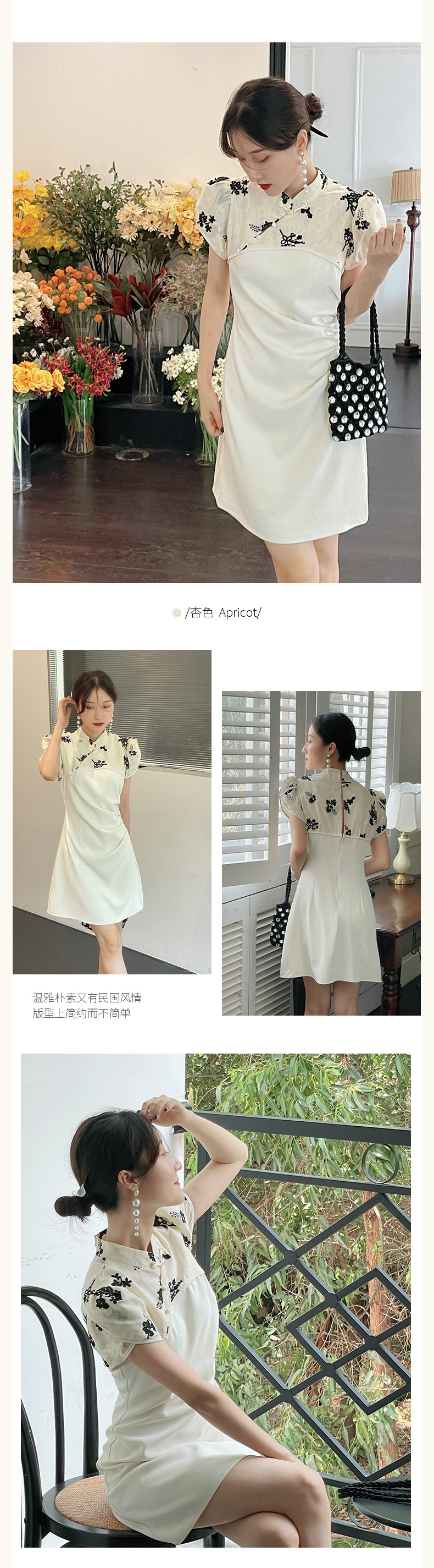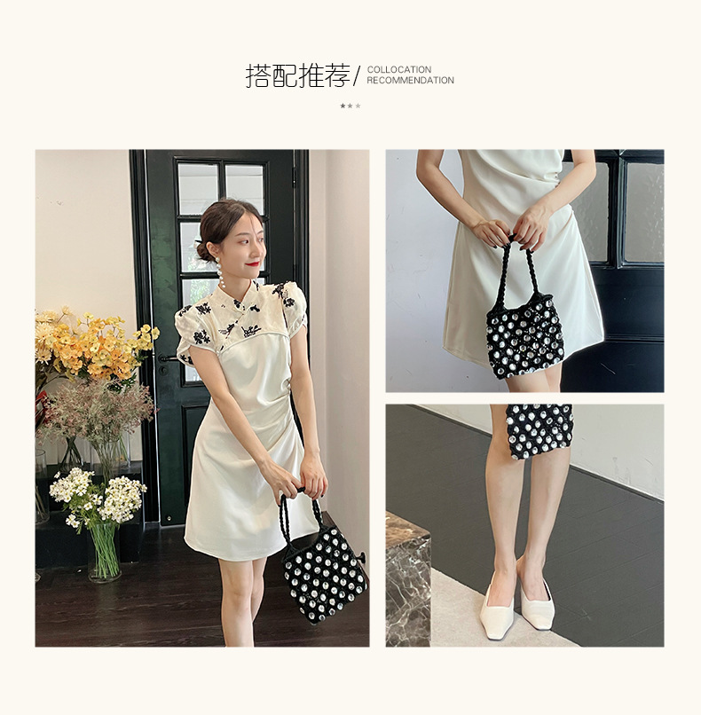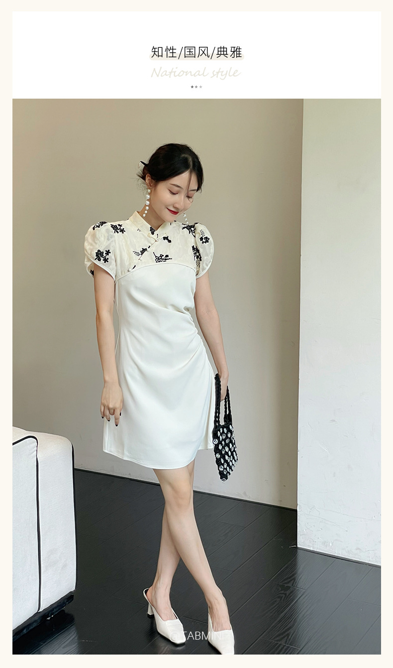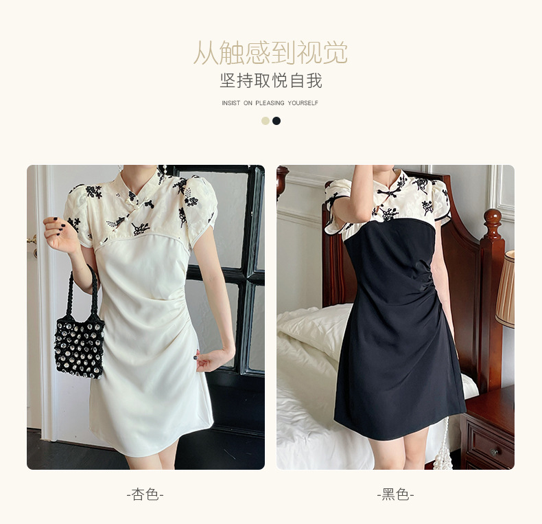 The 2022 Thirteen Factories New style Chinese-style dress for summer women's wear features a design sense of contrasting colors, a cinched waist, and a modified traditional Chinese style dress