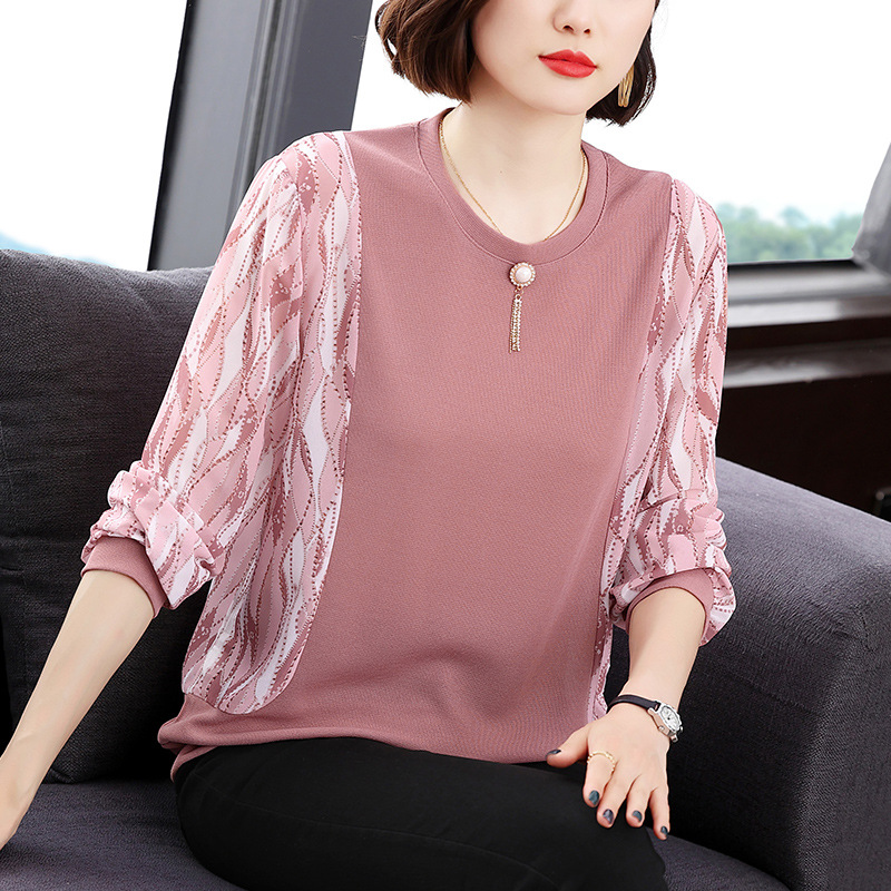 The 2023 new autumn dress for mothers is a stylish long-sleeved T-shirt. It is a loose outerwear for women aged 40 and 50