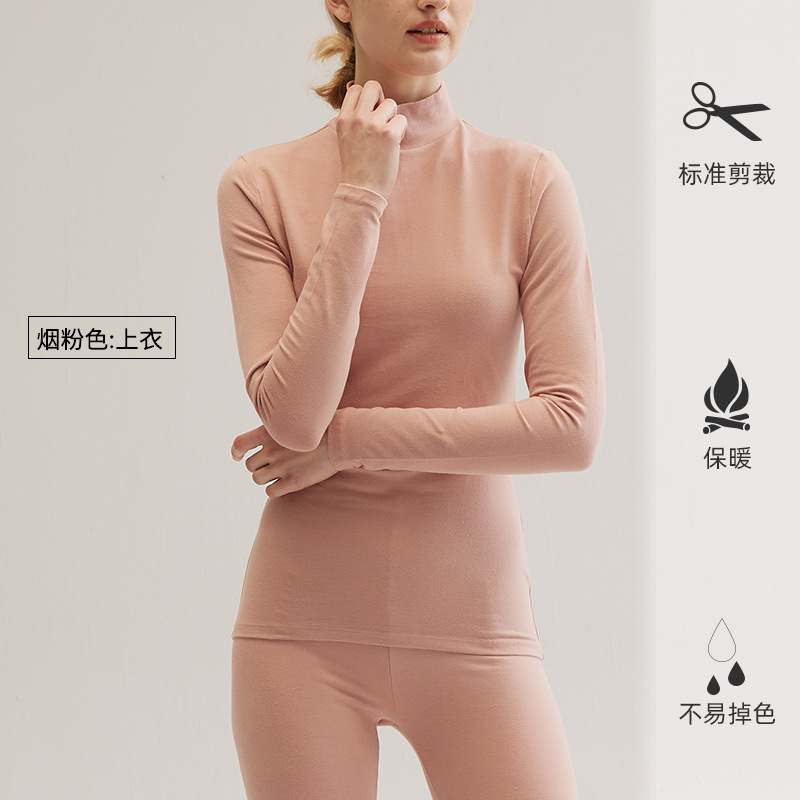The 2023 new style of pure cotton mid-neck thin thermal underwear for women, with a cotton sweater as the base layer and thin thermal underwear and thermal underwear inside