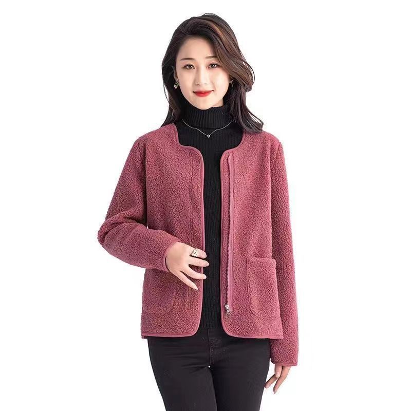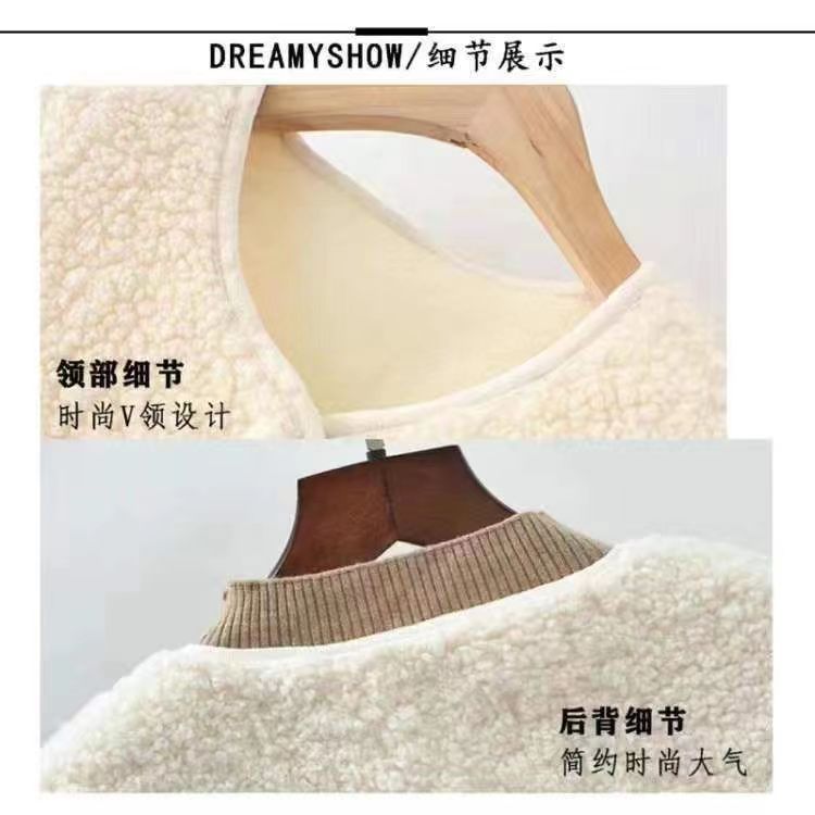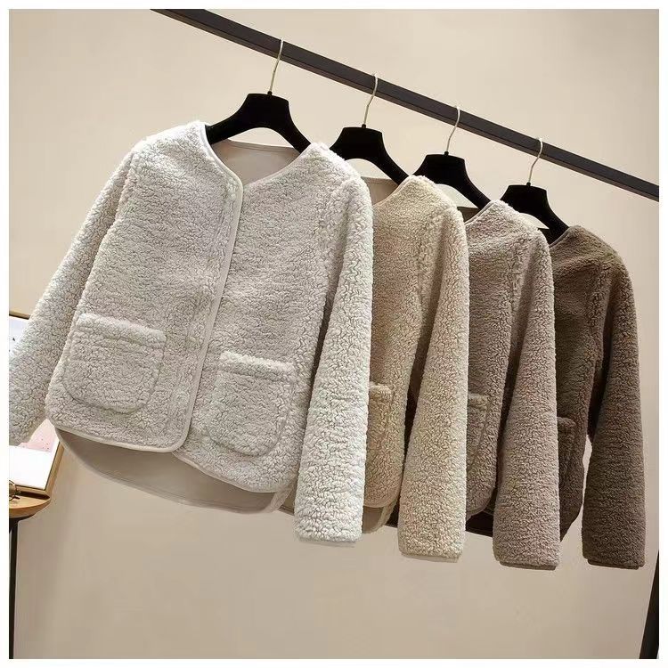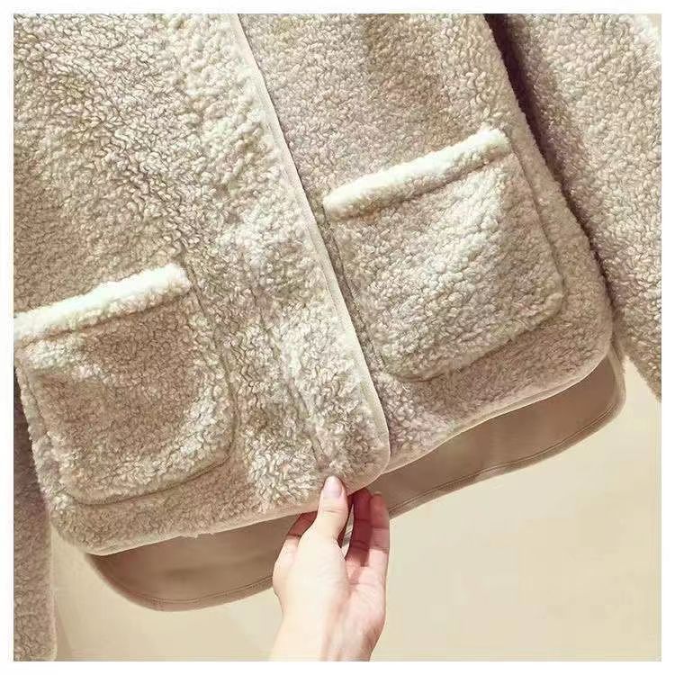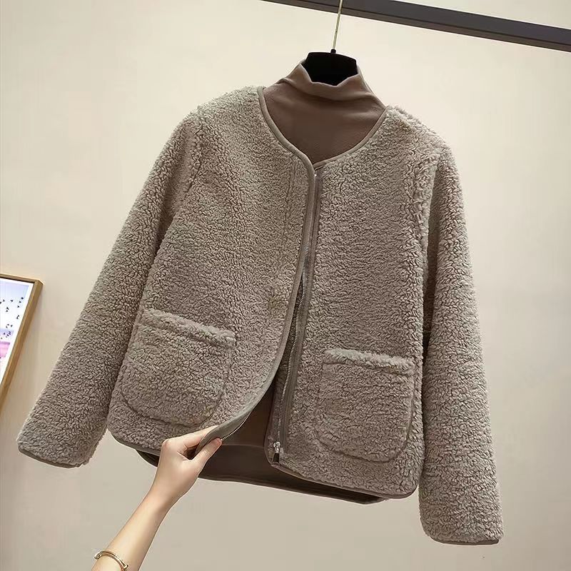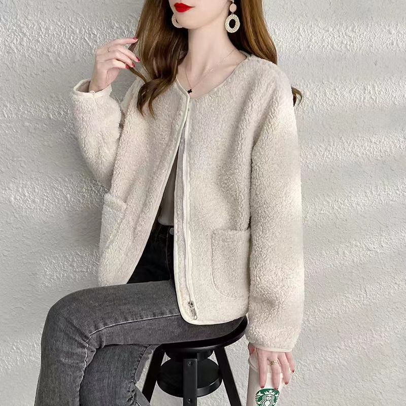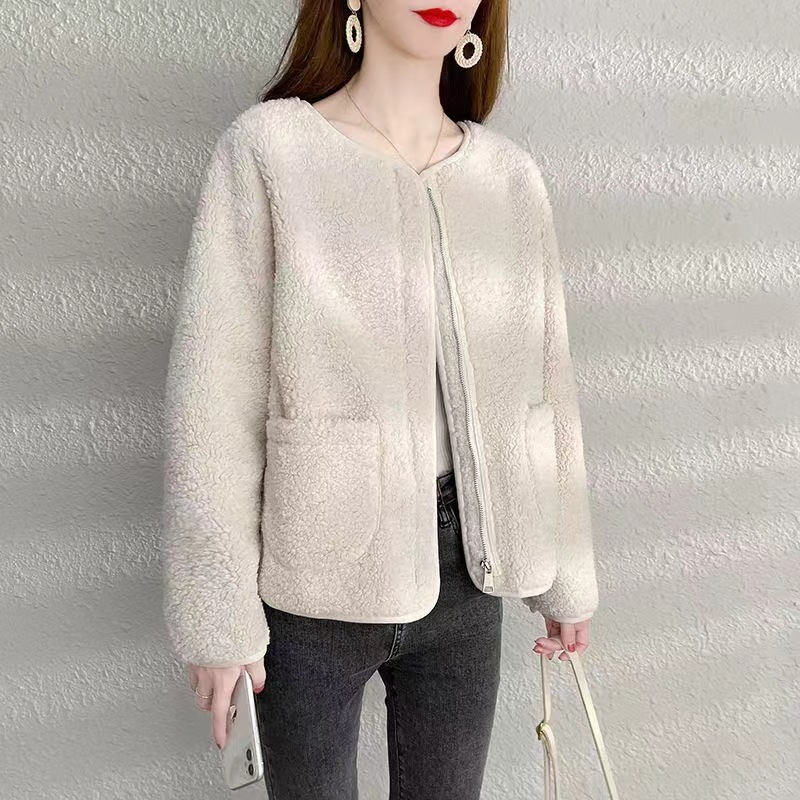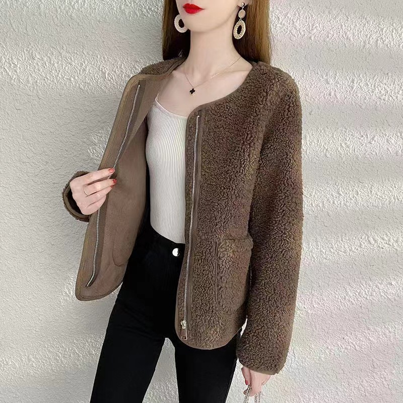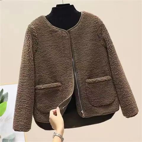 The 2023 new women's wear Korean-style round-neck lambskin plus-size fashionable pellet fleece short top and plus-size coat are warm, fashionable and lightweight