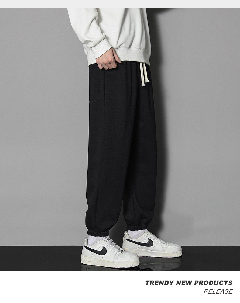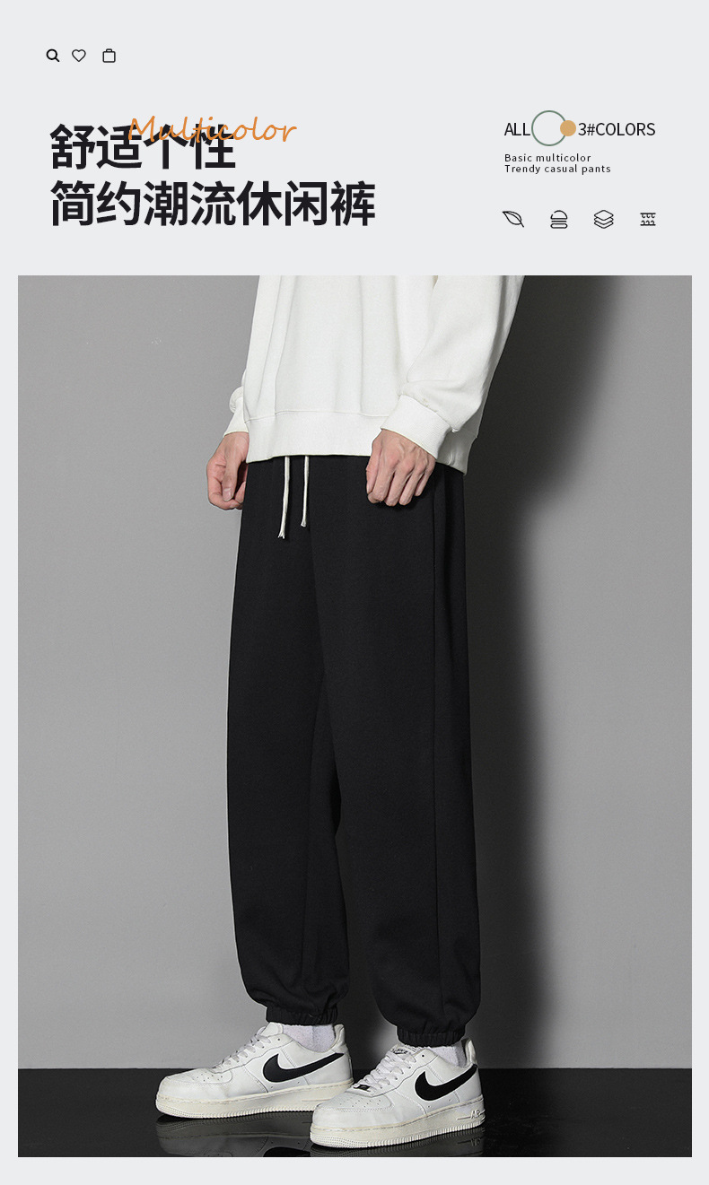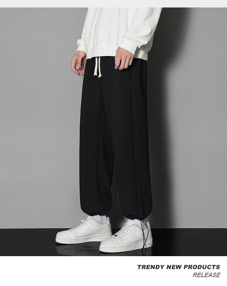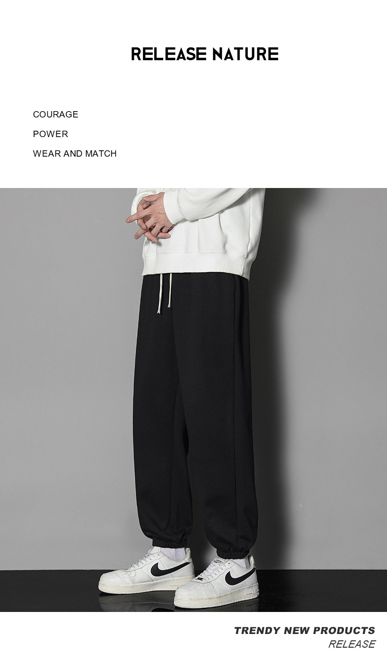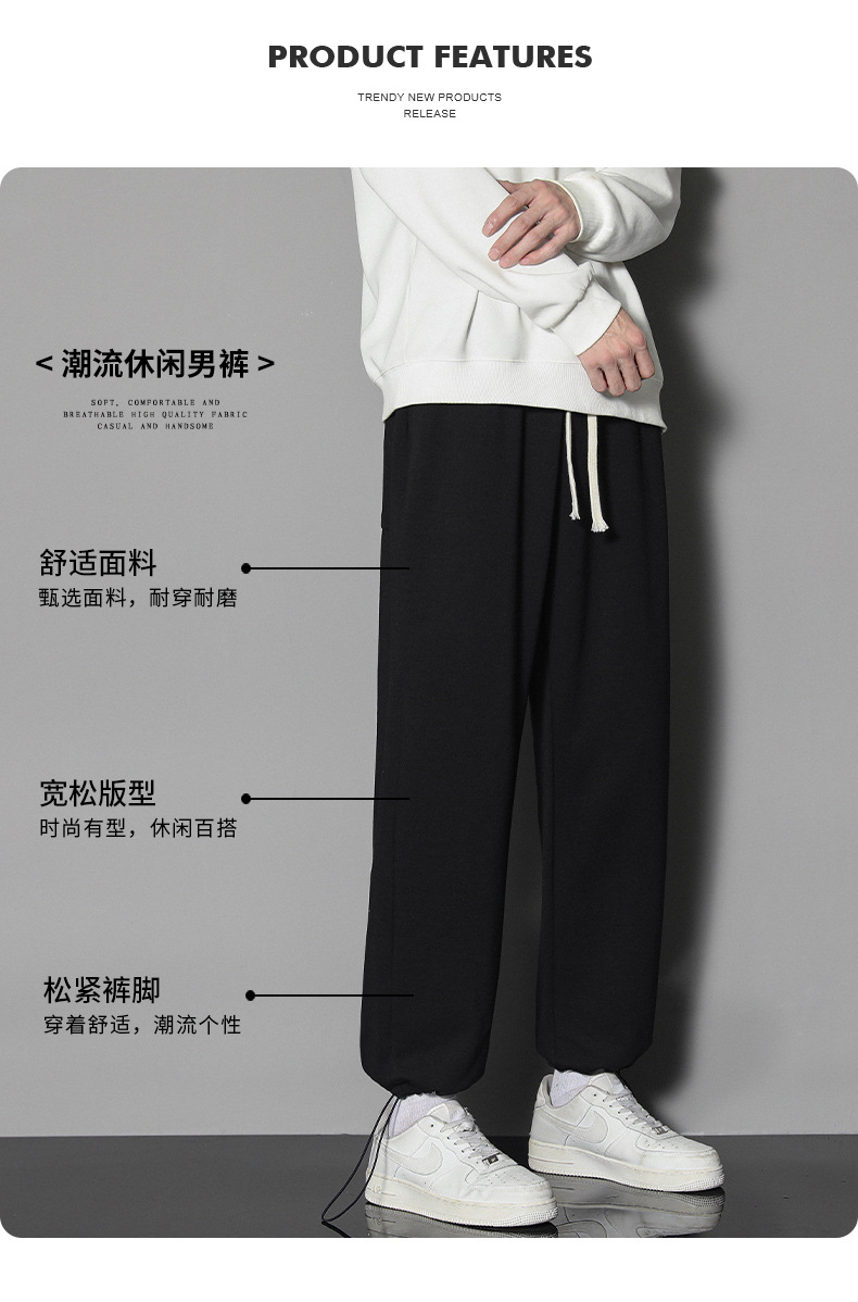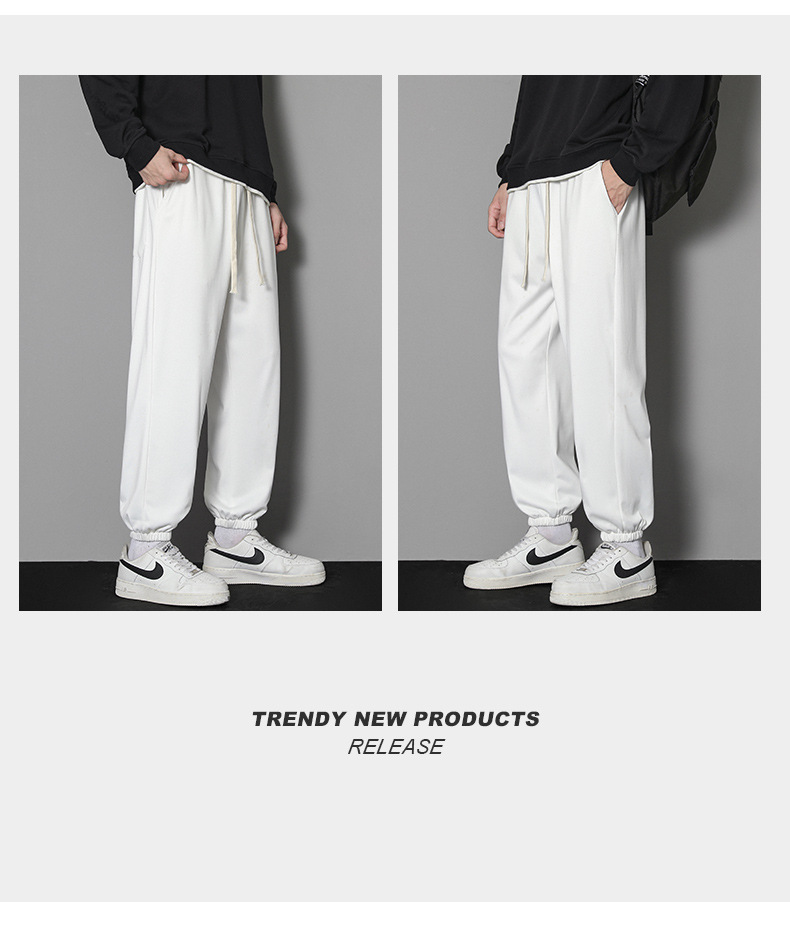 The 2024 new men's Spring and summer trousers are trendy, loose, solid-colored, casual, fashionable and sporty, thin and large-sized