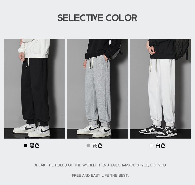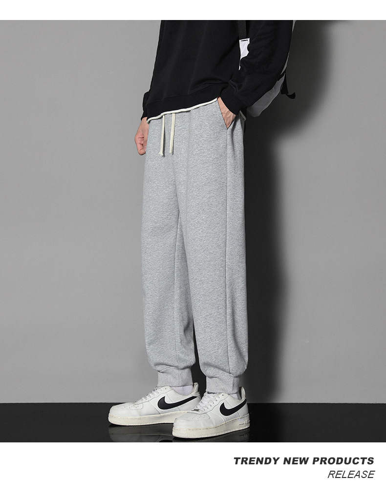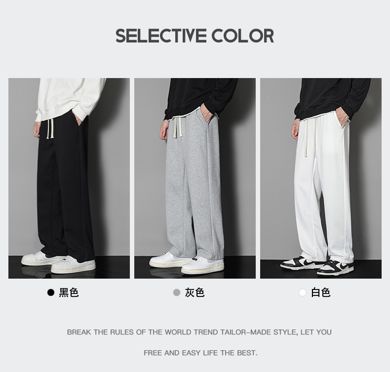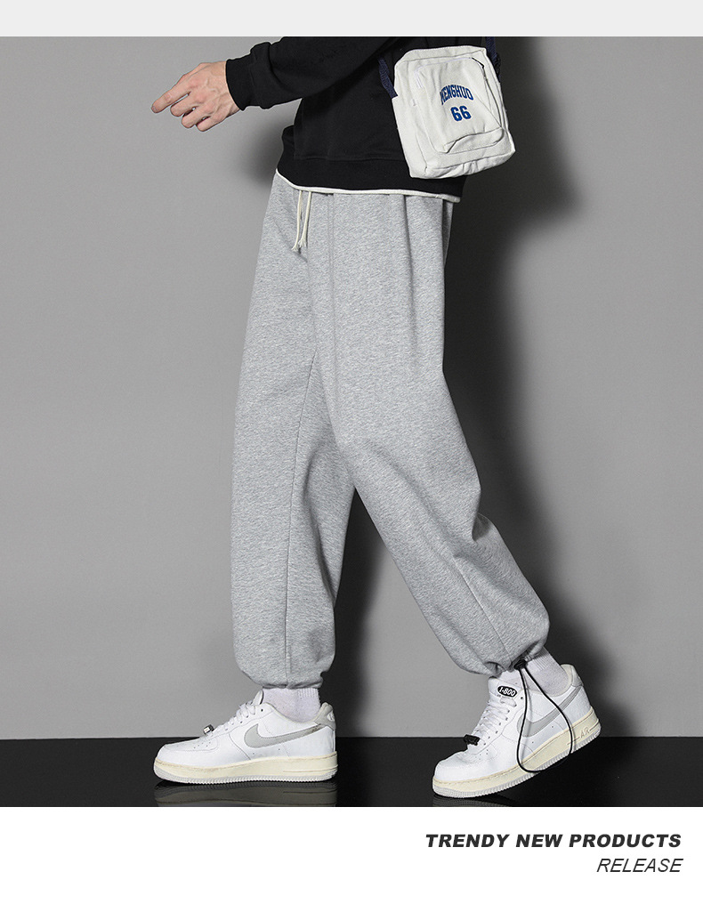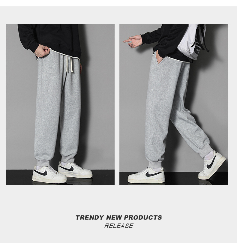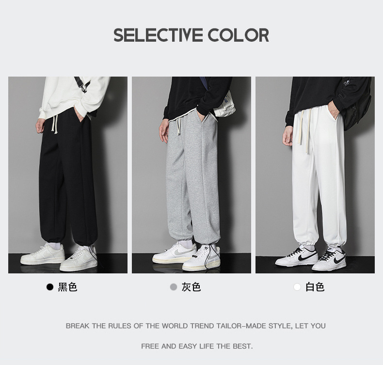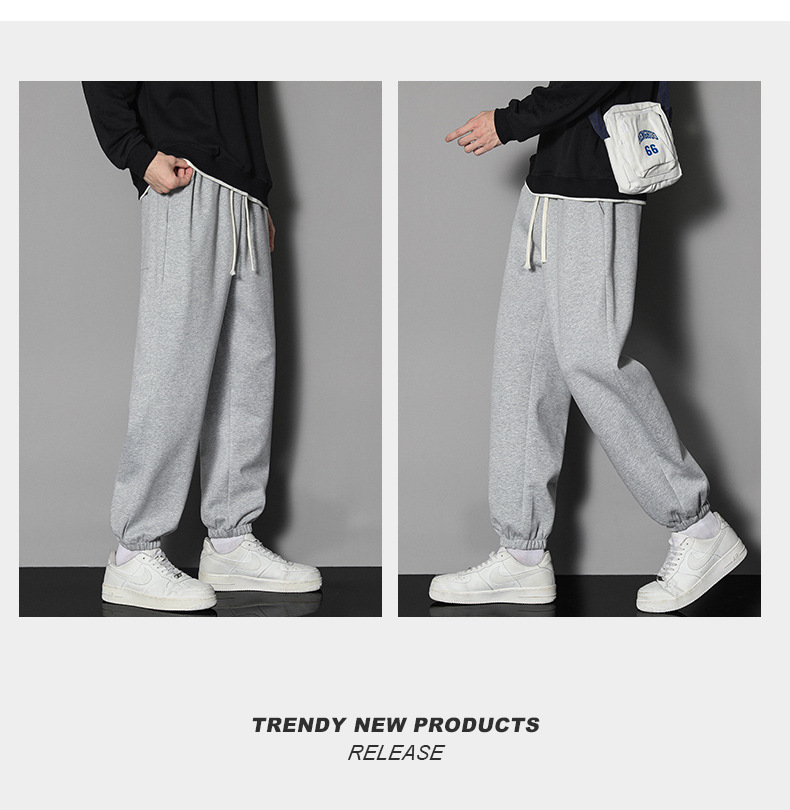 The 2024 new men's Spring and summer trousers are trendy, loose, solid-colored, casual, fashionable and sporty, thin and large-sized