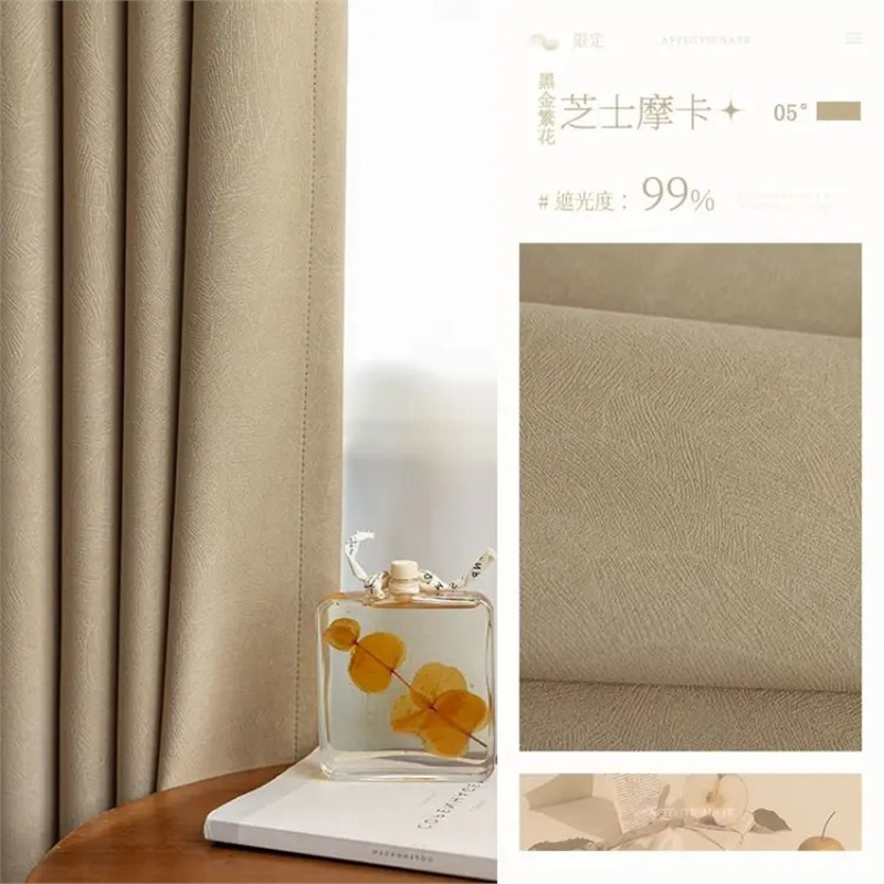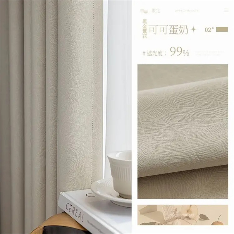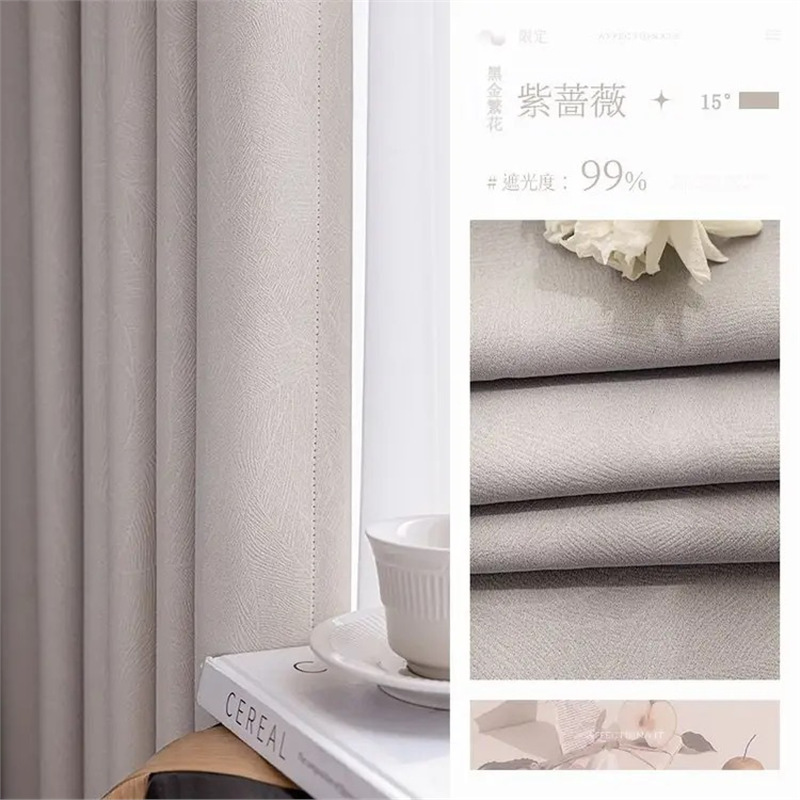The 2024 new style of curtain fabric with black and gold floral patterns, fully blackout, Chenille, high blackout living room, high-end hook-style bedroom