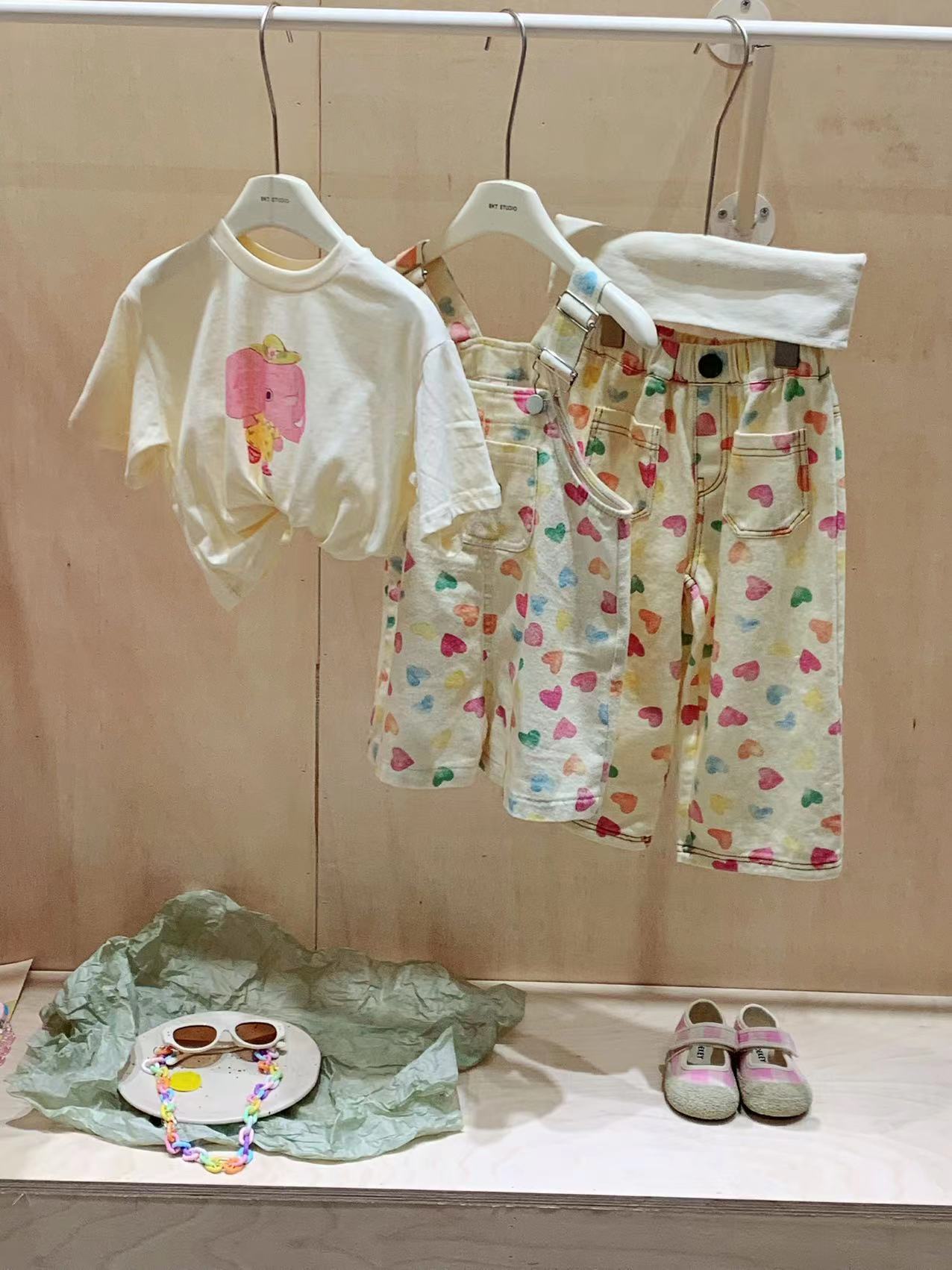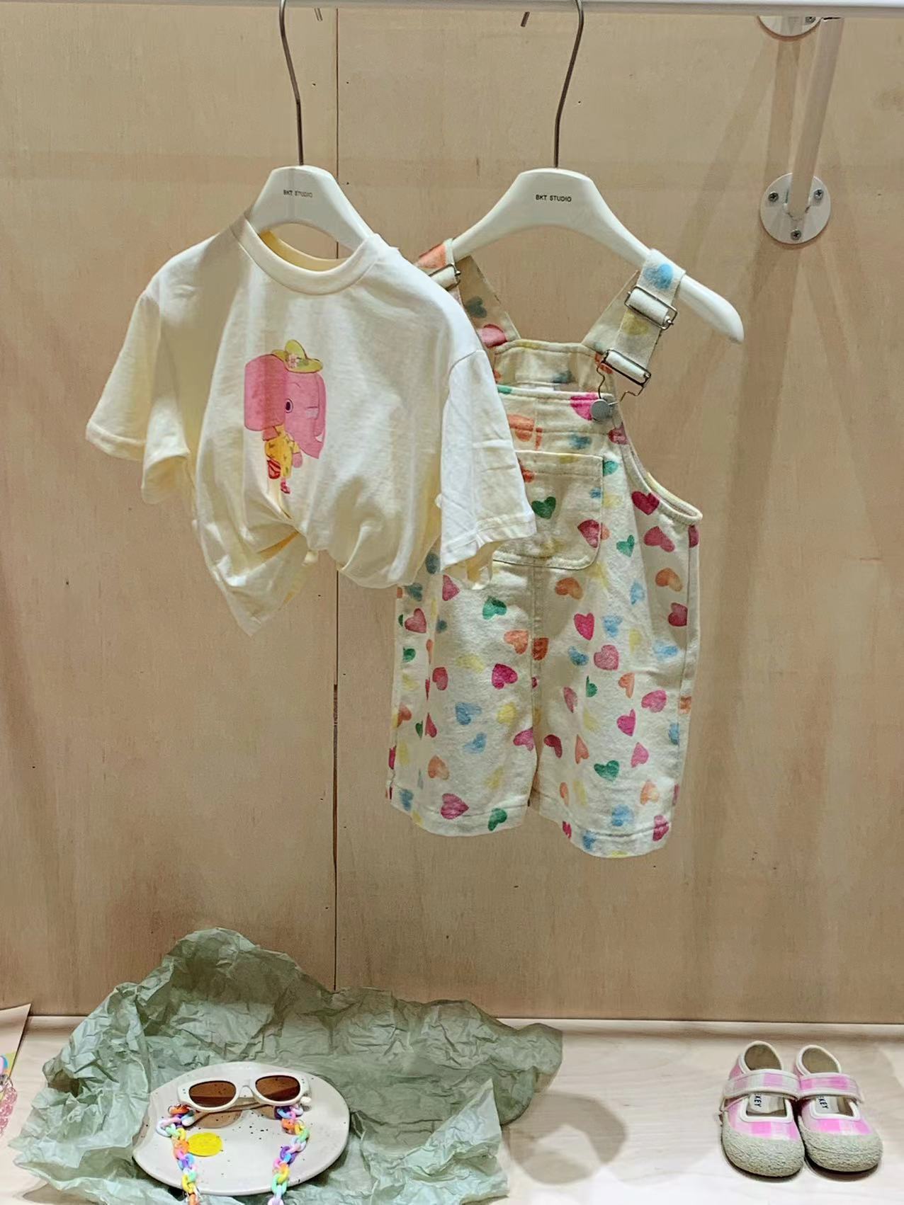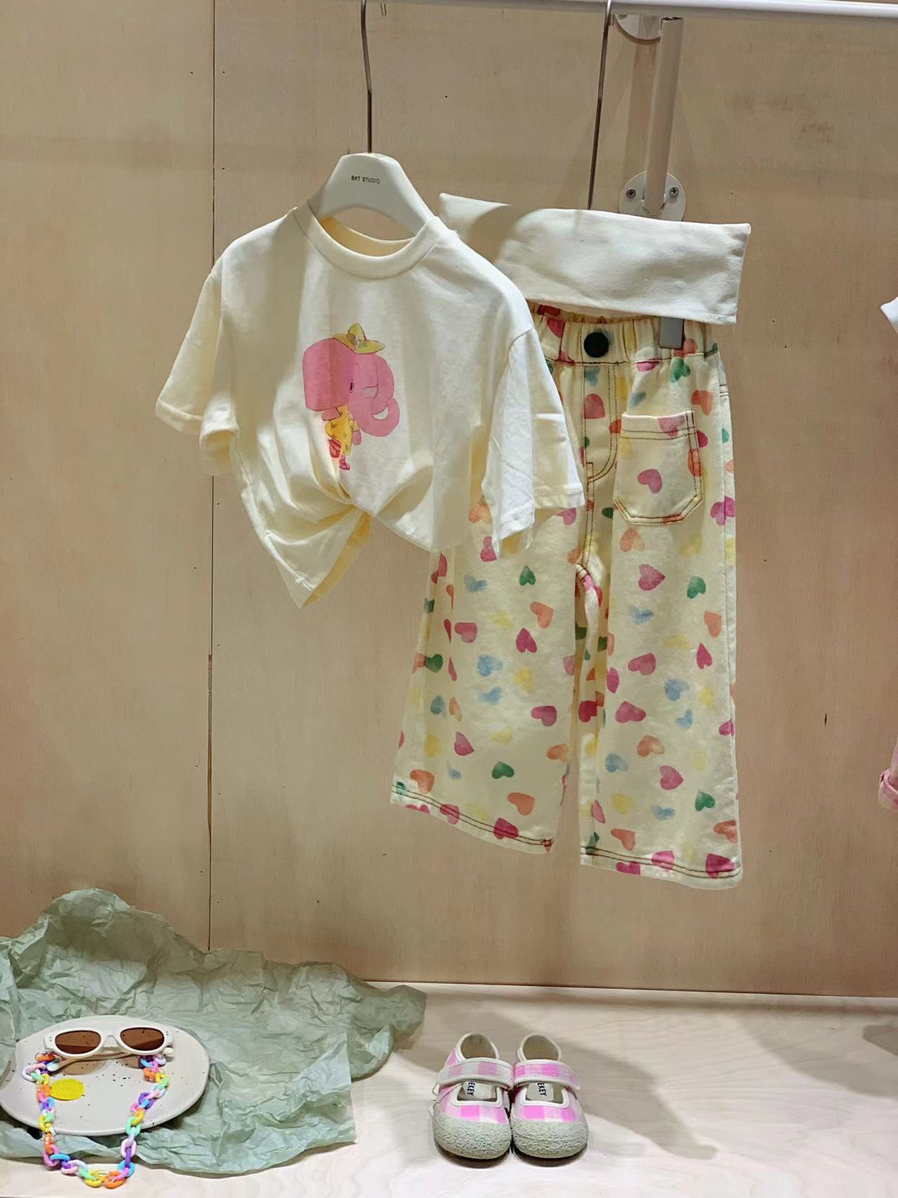 The 2024 summer new Korean-style children's clothing, featuring cartoon elephant prints on short-sleeved T-shirts and stylish baby tops, is a bestseller
