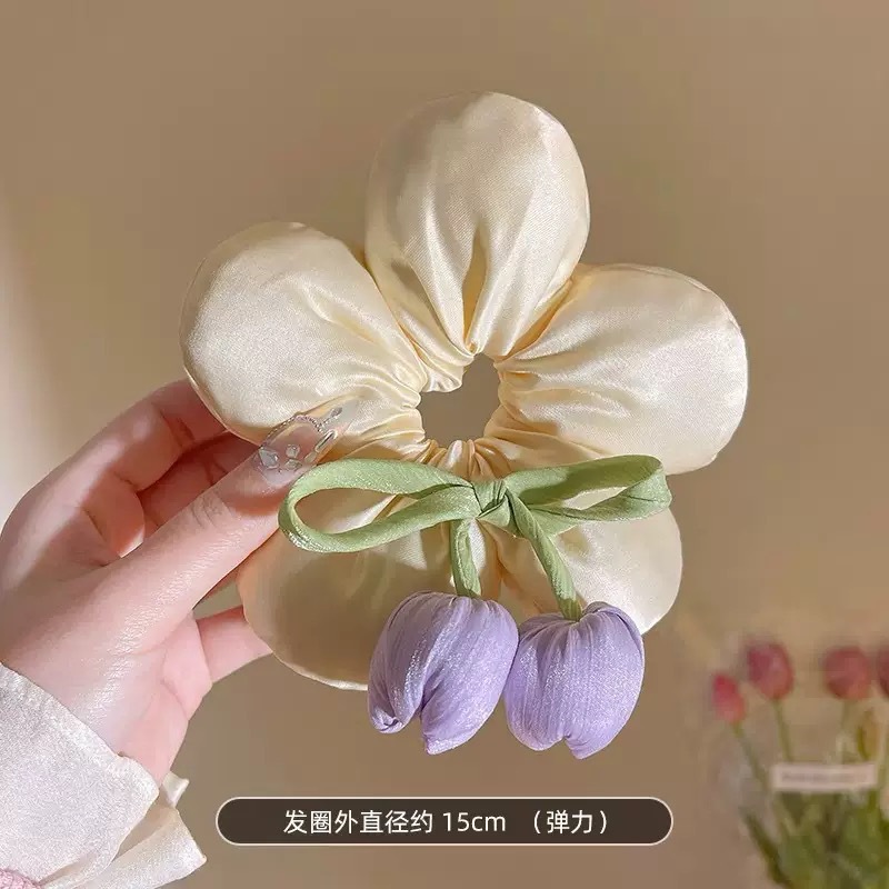 The 2025 new tulip flower large intestine hair band is highly elastic and can increase hair volume at the back of the head. It is a fluffy hair tie and a versatile hair accessory